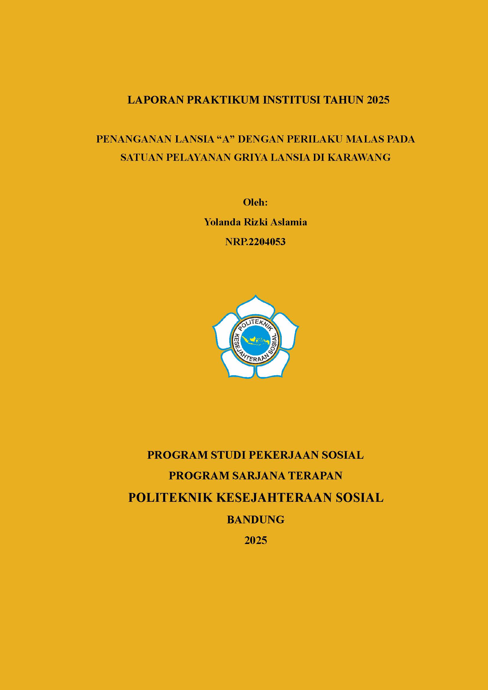 LAPORAN PRAKTIKUM INSTITUSI PENANGANAN LANSIA “A” DENGAN PERILAKU MALAS PADA SATUAN PELAYANAN GRIYA LANSIA DI KARAWANG