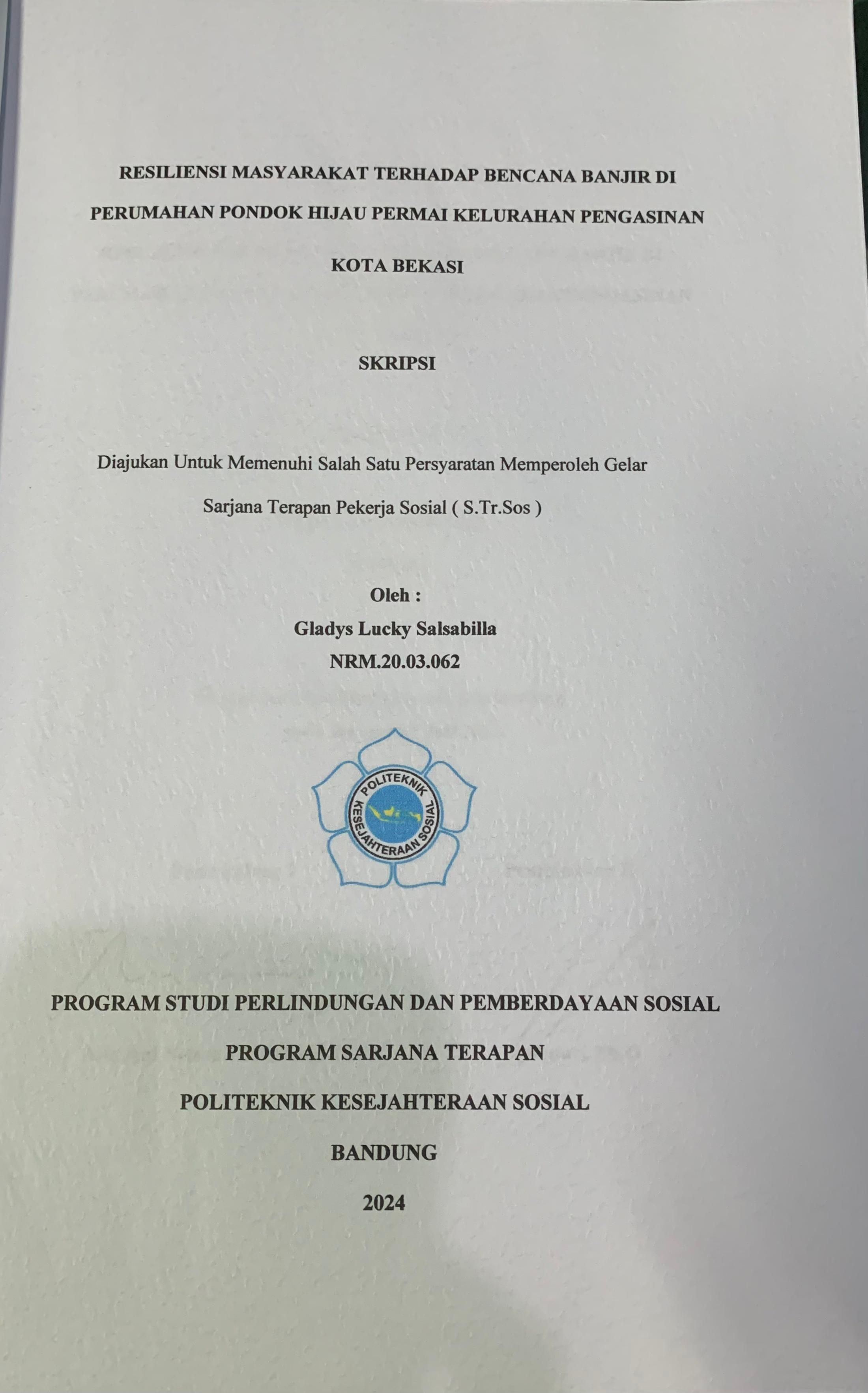 GLADYS LUCKY SALSABILLA, 20.03.062. Resiliensi Masyarakat terhadap Bencana Banjir di Perumahan Pondok Hijau Permai Kelurahan Pengasinan Kota Bekasi.