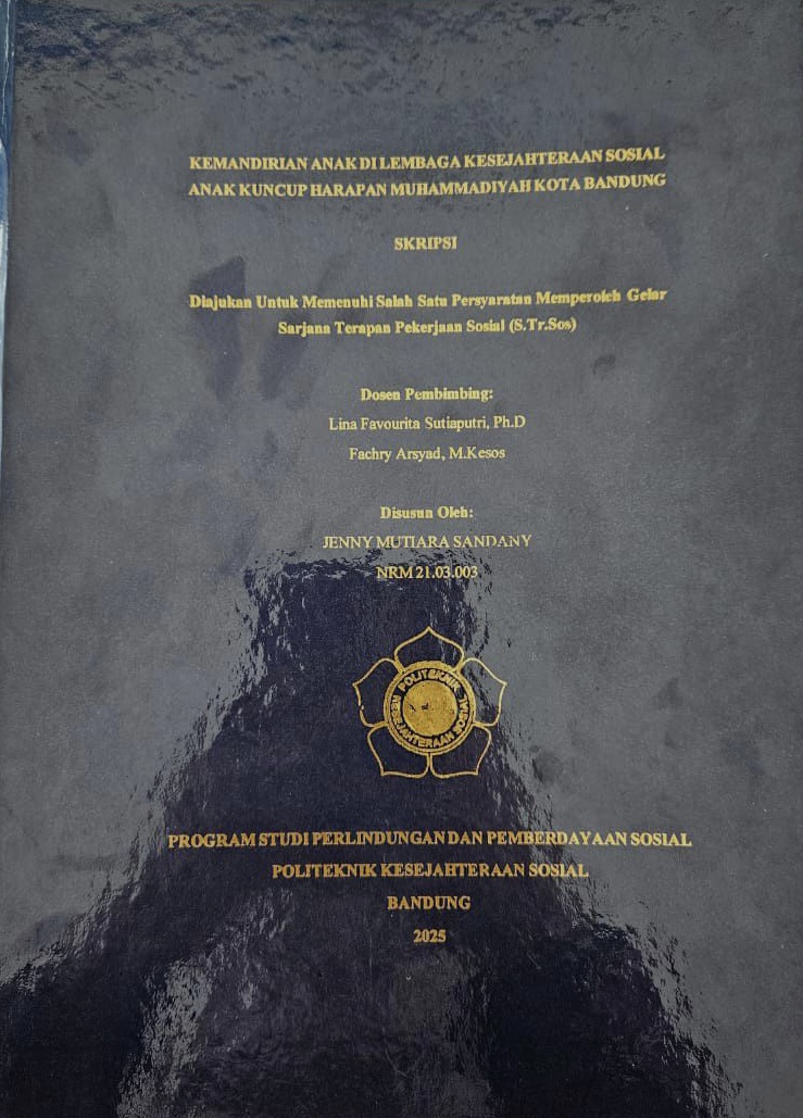 JENNY MUTIARA SANDANY. NRM. 21.03.003. Kemandirian Anak di Lembaga Kesejahteraan Sosial Anak Kuncup Harapan Muhammadiyah Kota Bandung. Dosen Pembimbing: LINA FAVOURITA SUTIAPUTRI dan FACHRY ARSYAD.