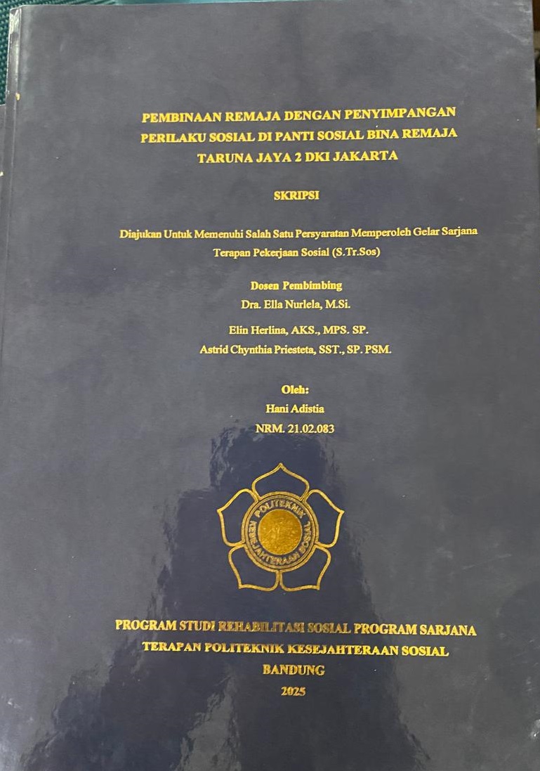 HANIADISTIA, 21.02.083 Pembinaan Remaja Dengan Penyimpangan Perilaku Sosial di Panti Sosial Bina Remaja Taruna Jaya 2 DKI Jakarta. Dosen pembimbing : ELLA NURLELA, dan ELIN HERLINA