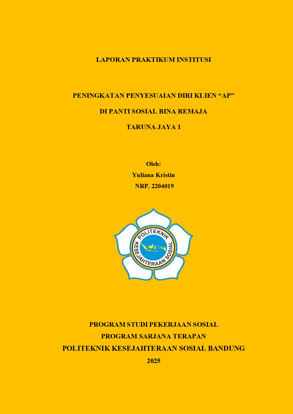 LAPORAN PRAKTIKUM INSTITUSI - PENINGKATAN PENYESUAIAN DIRI KLIEN “AP” DI PANTI SOSIAL BINA REMAJA TARUNA JAYA 1