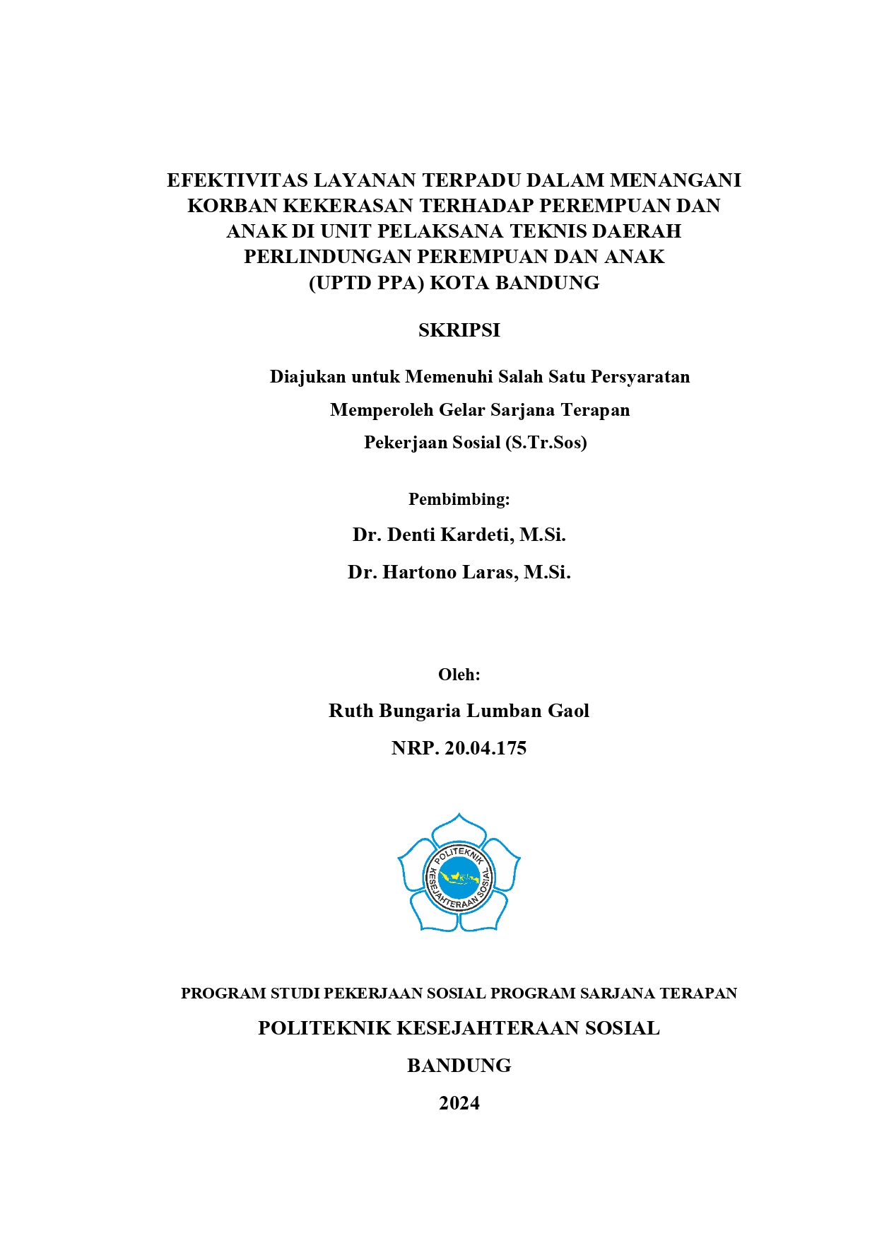 RUTH BUNGARIA LUMBAN GAOL, 20.04175. Efektivitas Layanan Terpadu