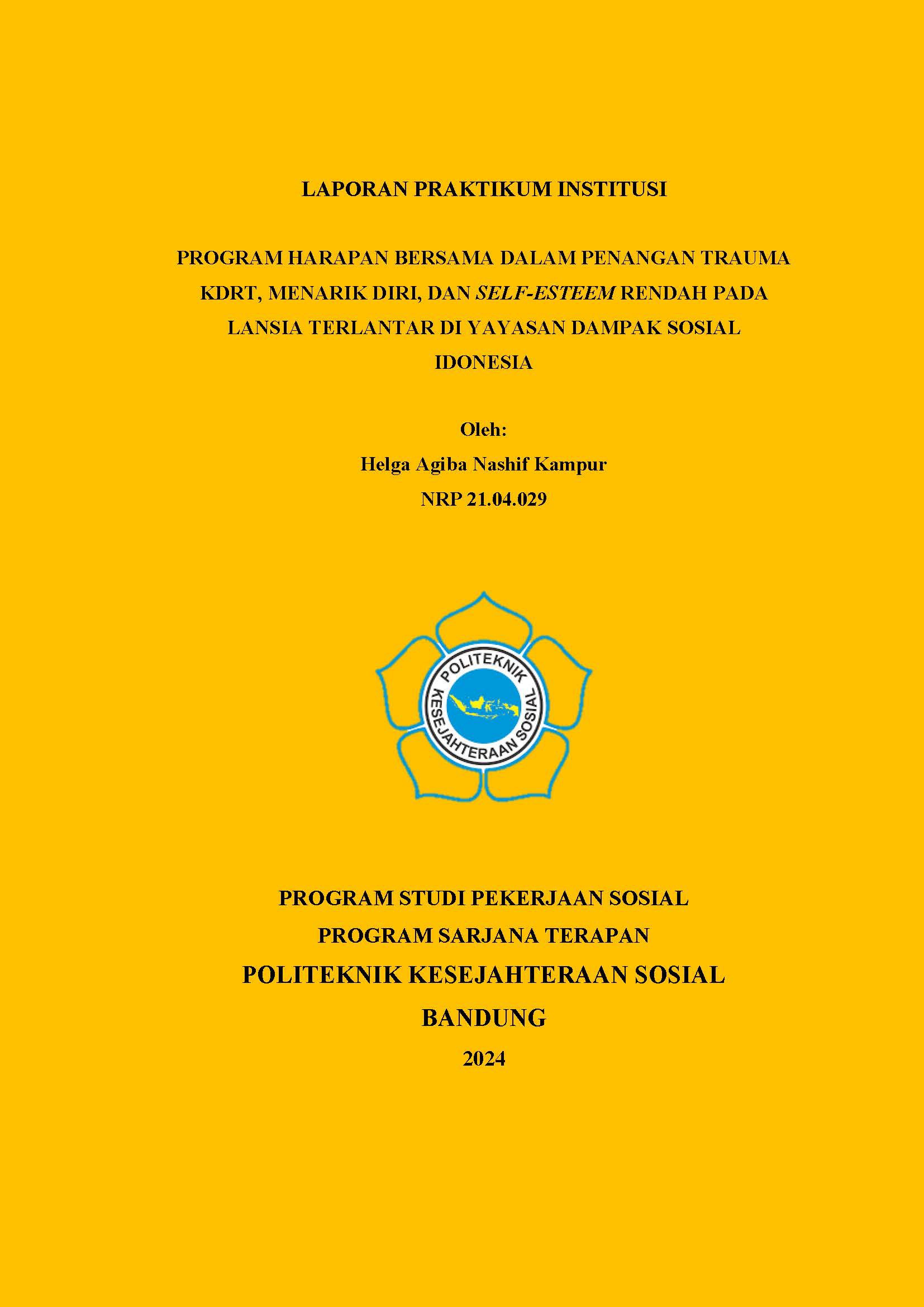 LAPORAN PRAKTIKUMINSTITUSI - PROGRAM HARAPAN BERSAMA DALAM PENANGANAN TRAUMA KDRT, MENARIK DIRI, DAN SELF-ESTEEMRENDAHPADA LANSIA TERLANTAR DI YAYASAN DAMPAKSOSIALINDONESIA