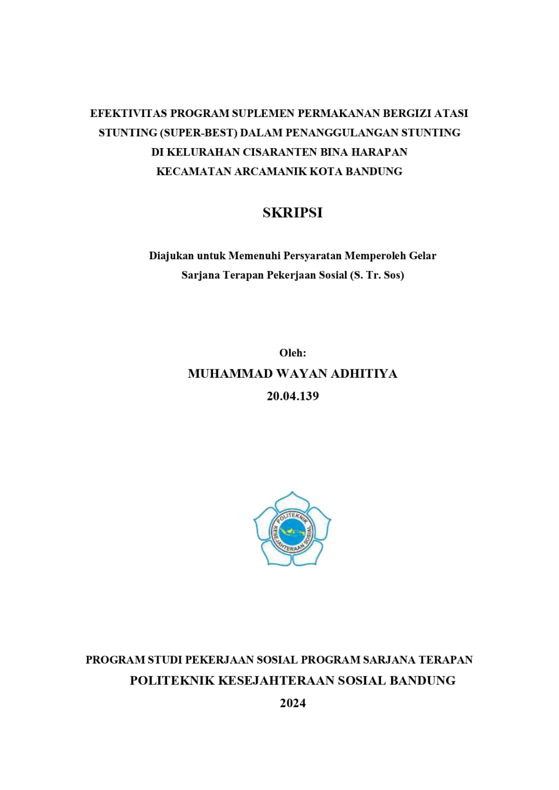 Efektivitas Program Permakanan Bergizi Atasi Stunting (SUPER-BEST) dalam Penanggulangan Stunting di Kelurahan Cisaranten Bina Harapan Kecamatan Arcamanik Kota Bandung,