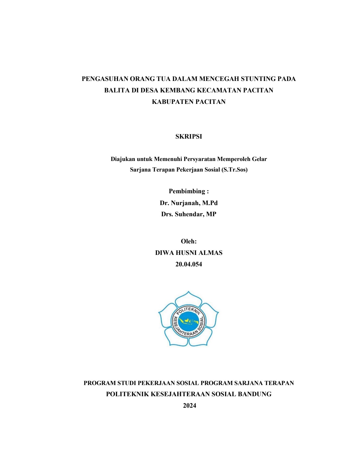 DIWA HUSNI ALMAS, NRP.20.04.054 : Pengasuhan Orang Tua dalam Mencegah Stunting pada Balita di Desa Kembang, Kecamatan Pacitan, Kabupaten Pacitan.
