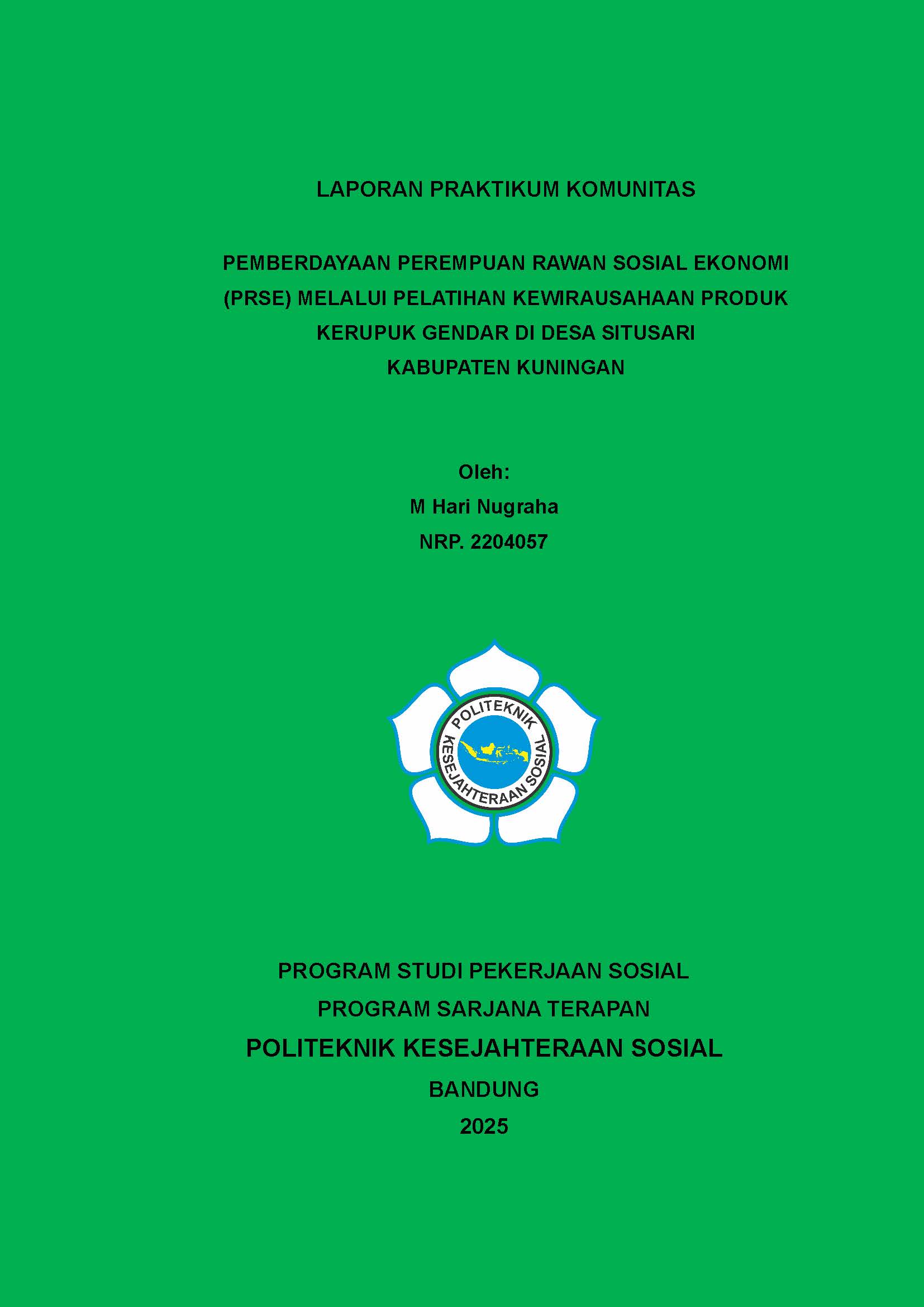 LAPORAN PRAKTIKUM KOMUNITAS PEMBERDAYAAN PEREMPUAN RAWAN SOSIAL EKONOMI (PRSE) MELALUI PELATIHAN KEWIRAUSAHAAN PRODUK KERUPUK GENDAR DI DESA SITUSARI KABUPATEN KUNINGAN