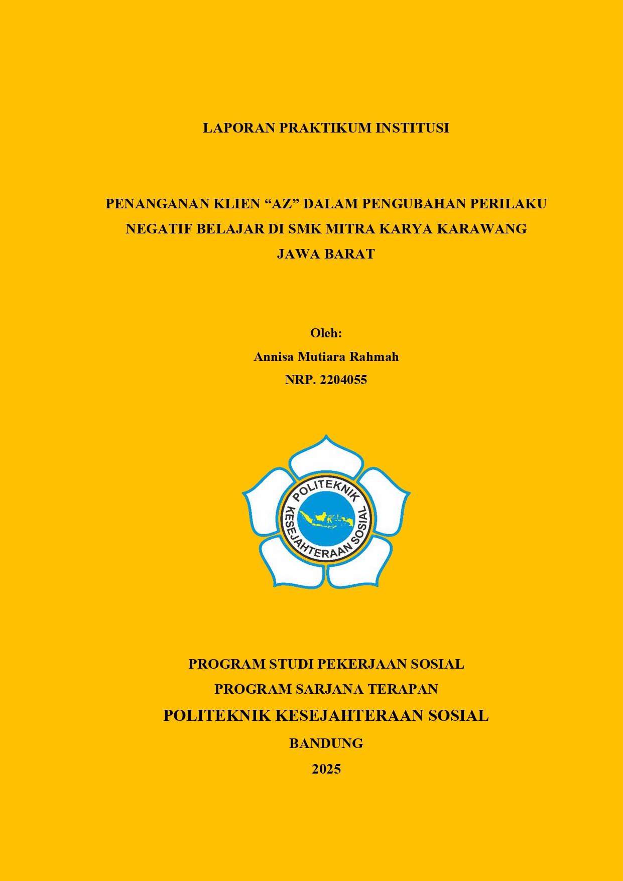 LAPORAN PRAKTIKUM INSTITUSI PENANGANAN KLIEN “AZ” DALAM PENGUBAHAN PERILAKU NEGATIF BELAJAR DI SMK MITRA KARYA KARAWANG JAWA BARAT