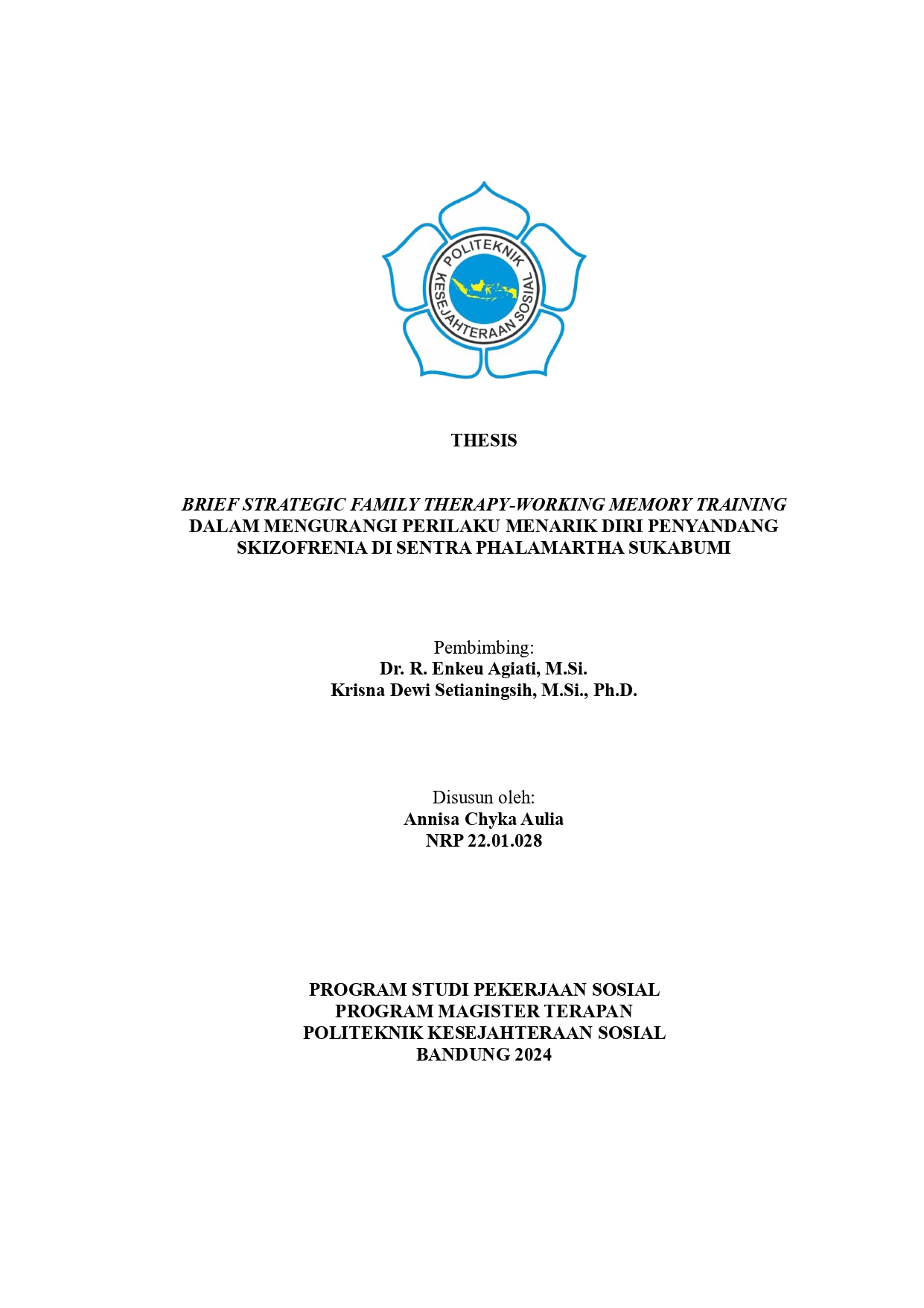 Brief Strategic Family Therapy-Working Memory Training Dalam Mengurangi Perilaku Menarik Diri Penyandang Skizofrenia di Sentra Phalamartha Sukabumi.