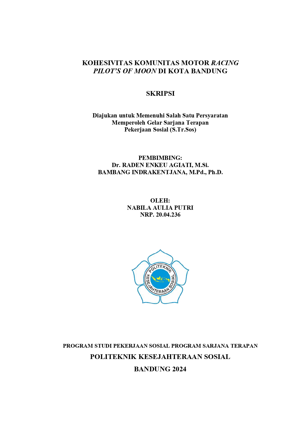 NABILA AULIA PUTRI ,NRP. 20.04.236 Kohesivitas Komunitas Motor Racing Pilot’s of Moon di Kota Bandung.