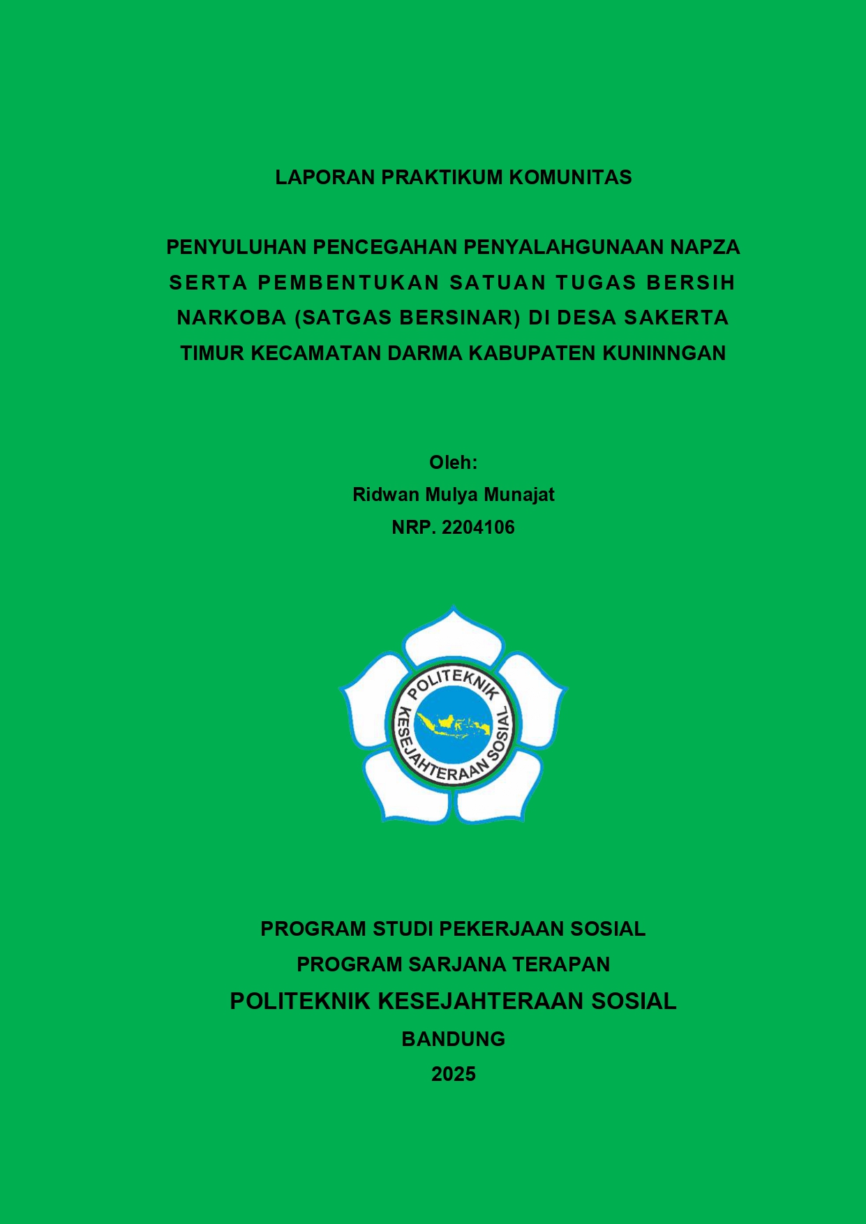 LAPORAN PRAKTIKUM KOMUNITAS PENYULUHAN PENCEGAHAN PENYALAHGUNAAN NAPZA SERTA PEMBENTUKAN SATUAN TUGAS BERSIH NARKOBA (SATGAS BERSINAR) DI DESA SAKERTA TIMUR KECAMATAN DARMA KABUPATEN KUNINGAN