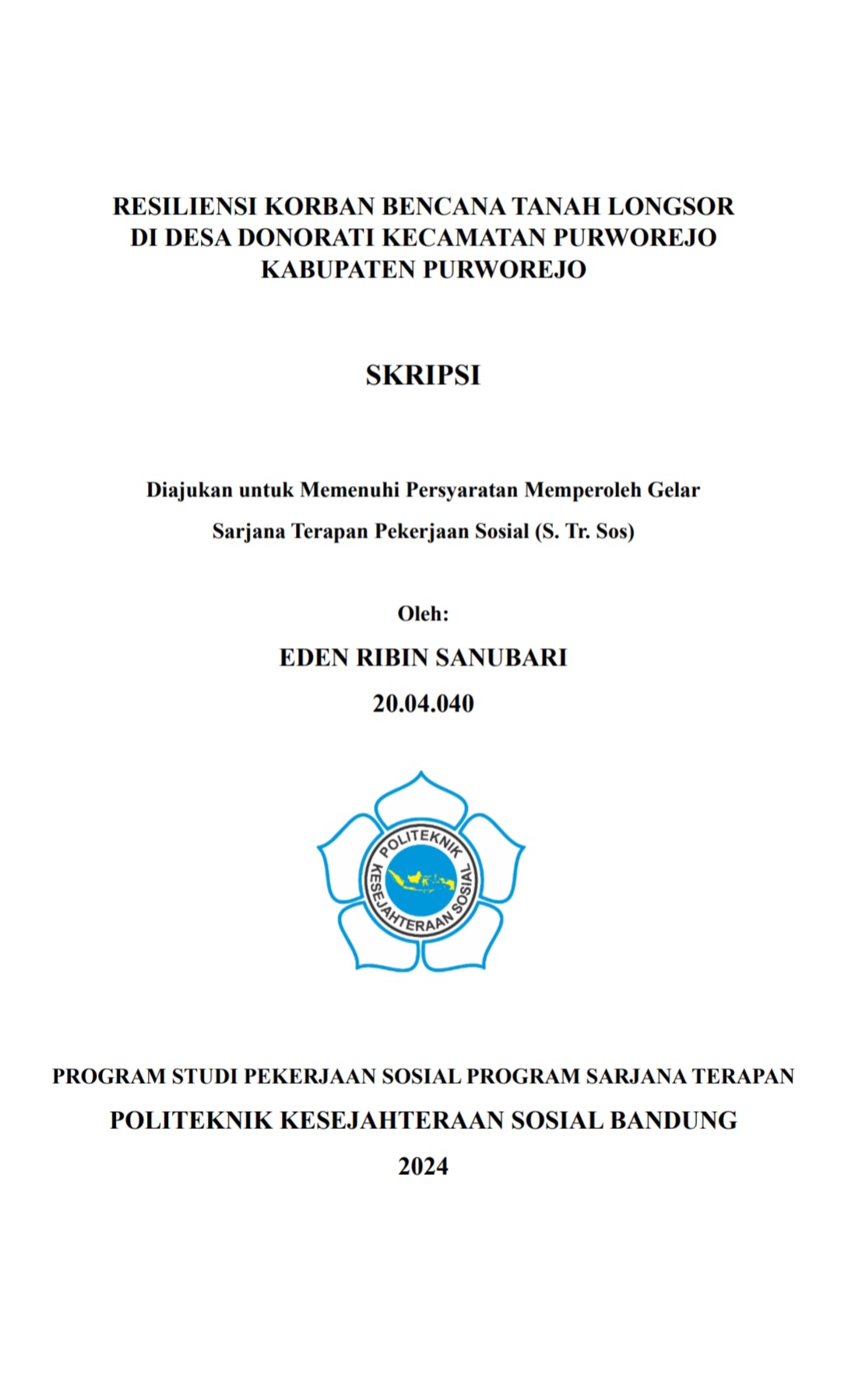 EDEN RIBIN SANUBARI, 20.04.040. Resiliensi Korban Bencana Tanah Longsor