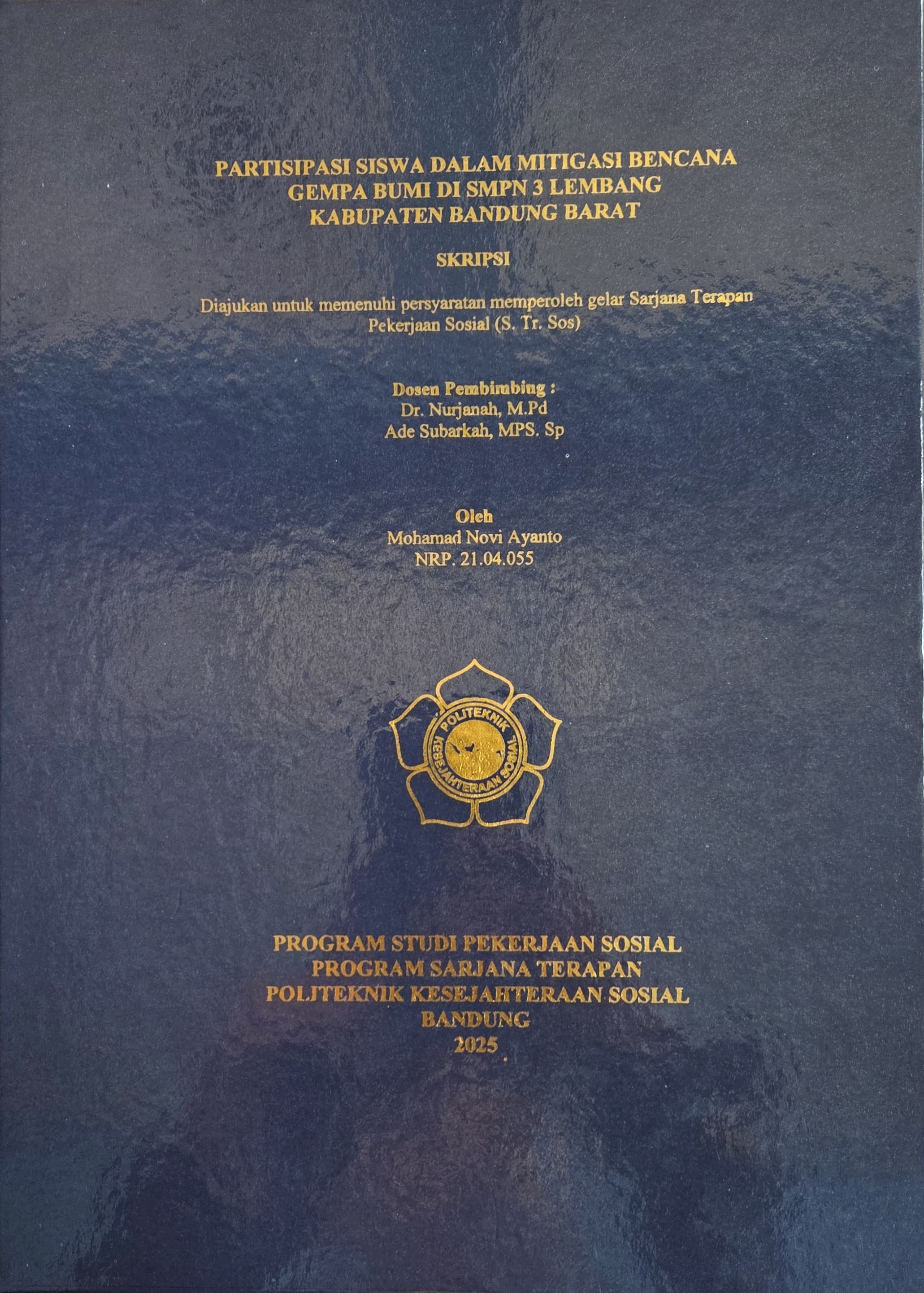 MOHAMAD NOVI AYANTO, 21.04.055. Partisipasi Siswa Dalam Mitigasi Bencana Gempa Bumi Di SMPN 3 Lembang Kabupaten Bandung Barat, Dibimbing oleh Nurjanah Dan Ade Subarkah Partisipasi anak dalam mitigasi bencana memberikan kesempatan untuk meningkatkan kesadaran, pengetahuan dan kepercayaan diri siswa. Partisipasi aktif siswa tidak hanya melindungi mereka dari dampak bencana, tetapi juga memberdayakan mereka sebagai agen perubahan dalam masyarakat. Skripsi ini membahas partisipasi siswa dalam mitigasi bencana gempa bumi di SMP Negeri 3 Lembang. Metode yang digunakan yaitu pendekatan kualitatif dalam bentuk deskriptif dengan teknik wawancara mendalam, observasi dan studi dokumentasi. Sumber data dalam penelitian ini yaitu enam informan yang terdiri dari tiga orang siswa yang pernah mengikuti kegiatan mitigasi bencana dan tiga orang guru. Skripsi ini fokus pada fenomena pemberian ruang partisipasi (space), penggunaan suara (voice), respons sekolah sebagai pendengar (audience), serta pengaruh (influence) siswa terhadap program mitigasi. Hasil penelitian menunjukkan bahwa meskipun sekolah telah menyediakan ruang partisipasi fisik dan psikologis bagi siswa, ruang tersebut belum terisi oleh ide atau gagasan terkait mitigasi bencana. Siswa memang memiliki kenyamanan dan akses dalam menyampaikan pendapat, namun keterlibatan mereka masih terbatas pada kegiatan umum dan belum menyentuh aspek mitigasi bencana. Kapasitas siswa terkait mitigasi bencana yang belum konsisten menyebabkan rendahnya pengetahuan, kesadaran, dan kepercayaan diri siswa dalam menyuarakan ide terkait isu tersebut. Respons sekolah terhadap aspirasi siswa juga belum konsisten. Partisipasi siswa masih cenderung bersifat simbolis, belum terintegrasi dalam kebijakan, dan masih membutuhkan mekanisme umpan balik yang lebih terstruktur. Peneliti melihat adanya kebutuhan dalam peningkatan kapasitas terkait mitigasi bencana dan mendorong adanya partisipasi aktif siswa. Peneliti mengusulkan program "Sekolah Siaga Bencana SMPN 3 Lembang (SIGAB)" sebagai solusi terpadu yang dapat memberikan ruang partisipasi kepada siswa. Kata Kunci: Partisispasi siswa, Mitigasi Bencana, Sekolah Siaga Becnana