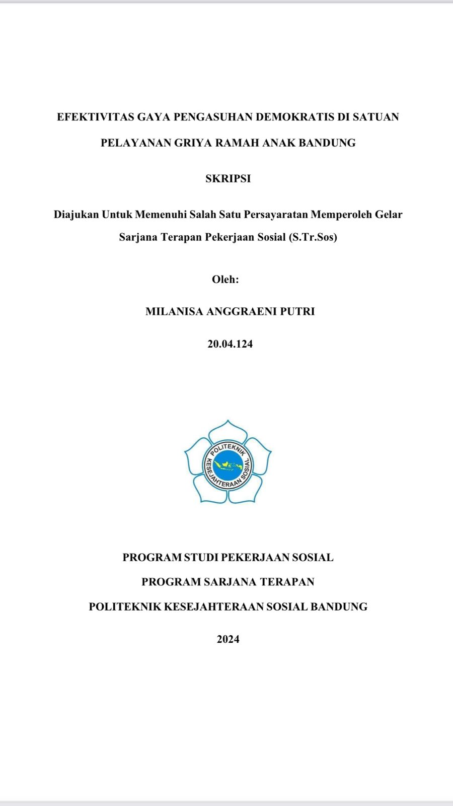 Efektivitas Gaya Pengasuhan Demokratis Di Satuan Pelayanan Griya Ramah Anak Bandung.