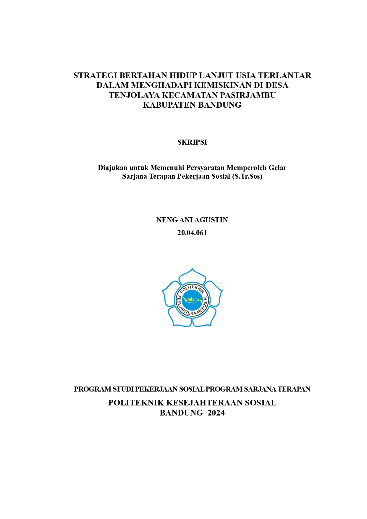 Strategi Bertahan Hidup Lanjut Usia Terlantar dalam Menghadapi Kemiskinan di Desa Tenjolaya Kecamatan Pasirjambu Kabupaten Bandung.