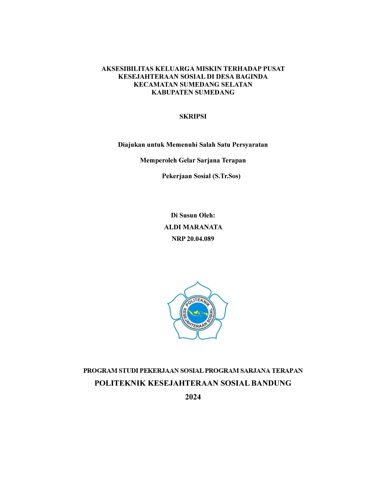ALDI MARANATA 20.04.089. Aksesibilitas Keluarga Miskin Terhadap Pusat Kesejahteraan Sosial Di Desa Baginda.