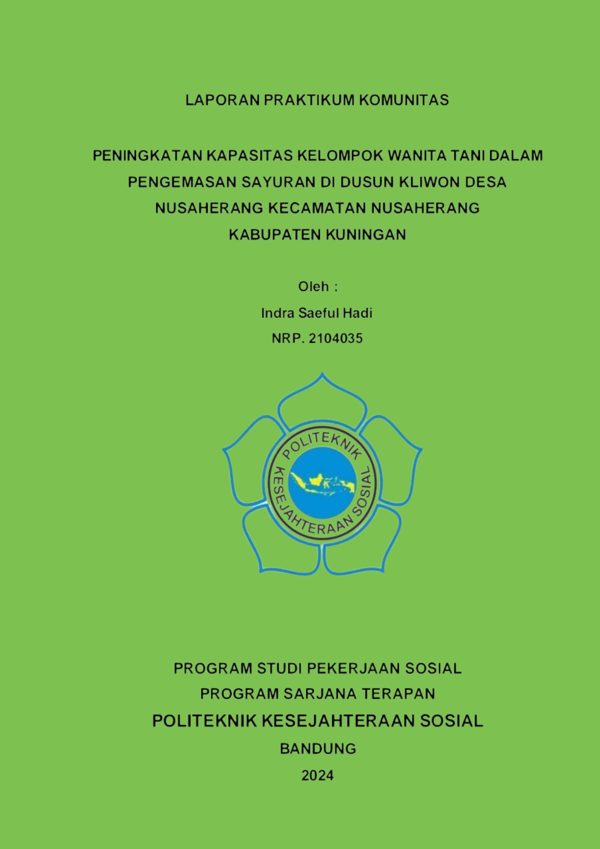 LAPORAN PRAKTIKUM KOMUNITAS - PENINGKATAN KAPASITAS KELOMPOK WANITA TANI DALAM PENGEMASAN SAYURAN DI DUSUN KLIWON DESA NUSAHERANG KECAMATAN NUSAHERANG KABUPATEN KUNINGAN
