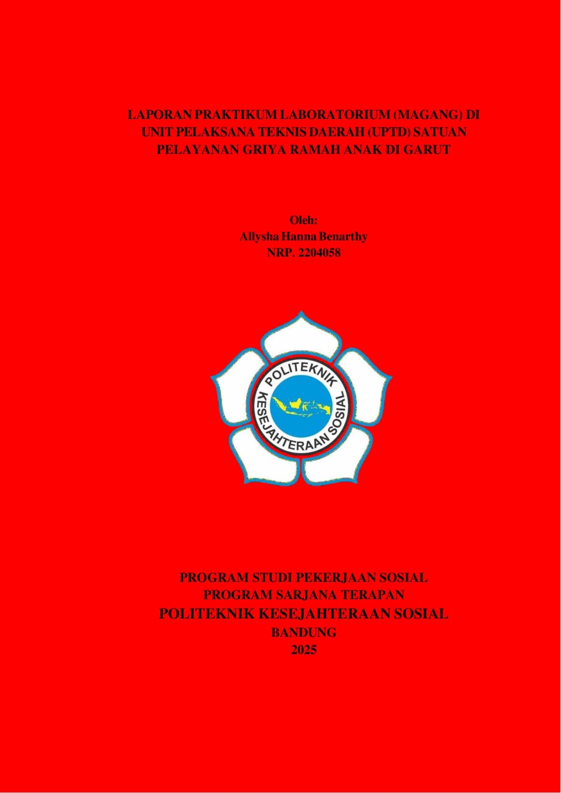 LAPORAN PRAKTIKUM LABORATORIUM (MAGANG) DI UNIT PELAKSANA TEKNIS DAERAH (UPTD) SATUAN PELAYANAN GRIYA RAMAH ANAK DI GARUT