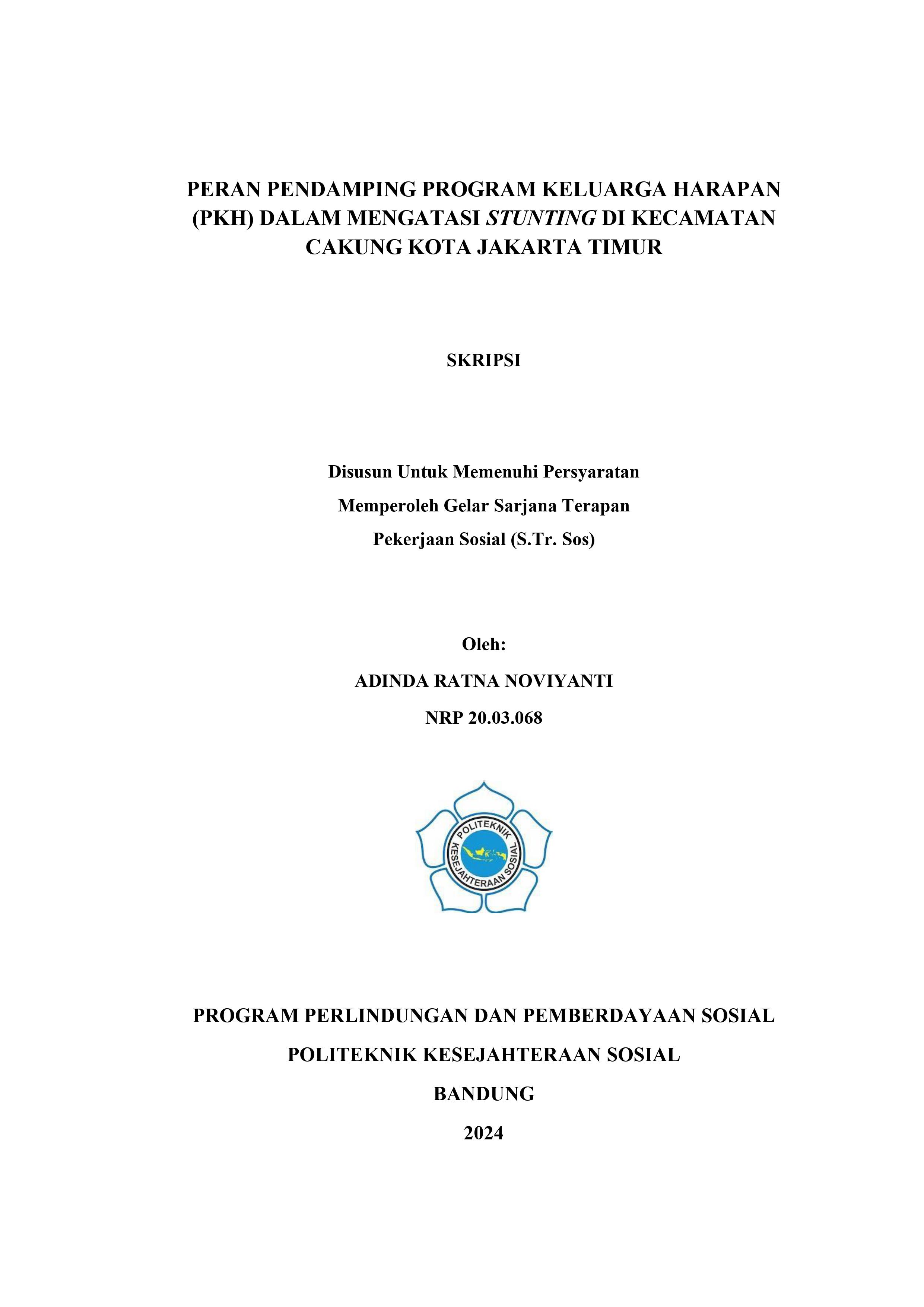 ADINDA RATNA NOVIYANTI, 20.03.068. Peran Pendamping Program Keluarga Harapan (PKH) dalam Mengatasi Stunting di Kecamatan Cakung Kota Jakarta Timur.
