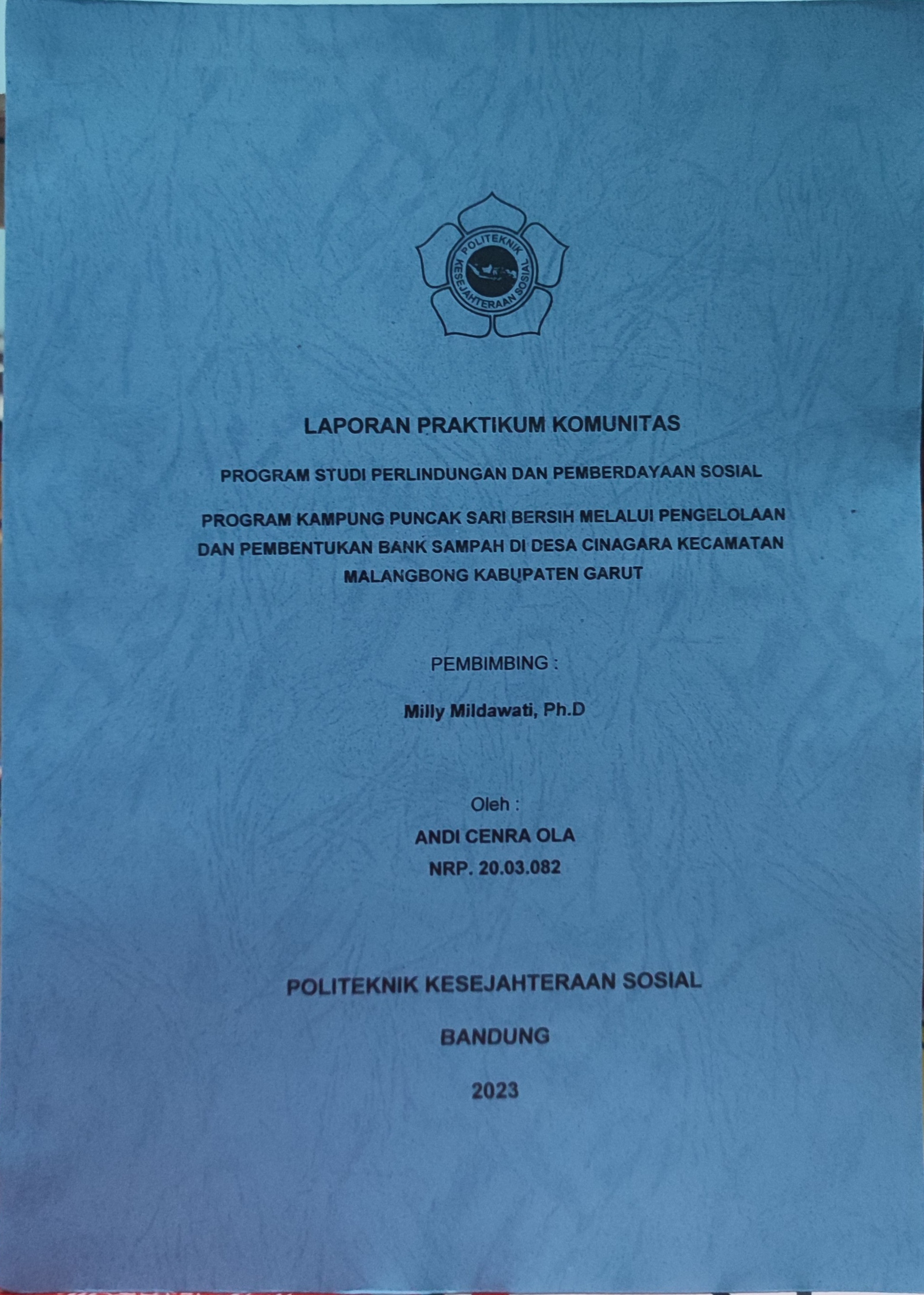 LAPORAN PRAKTIKUM KOMUNITAS LINDAYASOS - PROGRAM KAMPUNG PUNCAK SARI BERSIH MELALUI PENGELOLAAN DAN PEMBENTUKAN BANK SAMPAH DI DESA CINAGARA KECAMATAN MALANGBONG KABUPATEN GARUT
