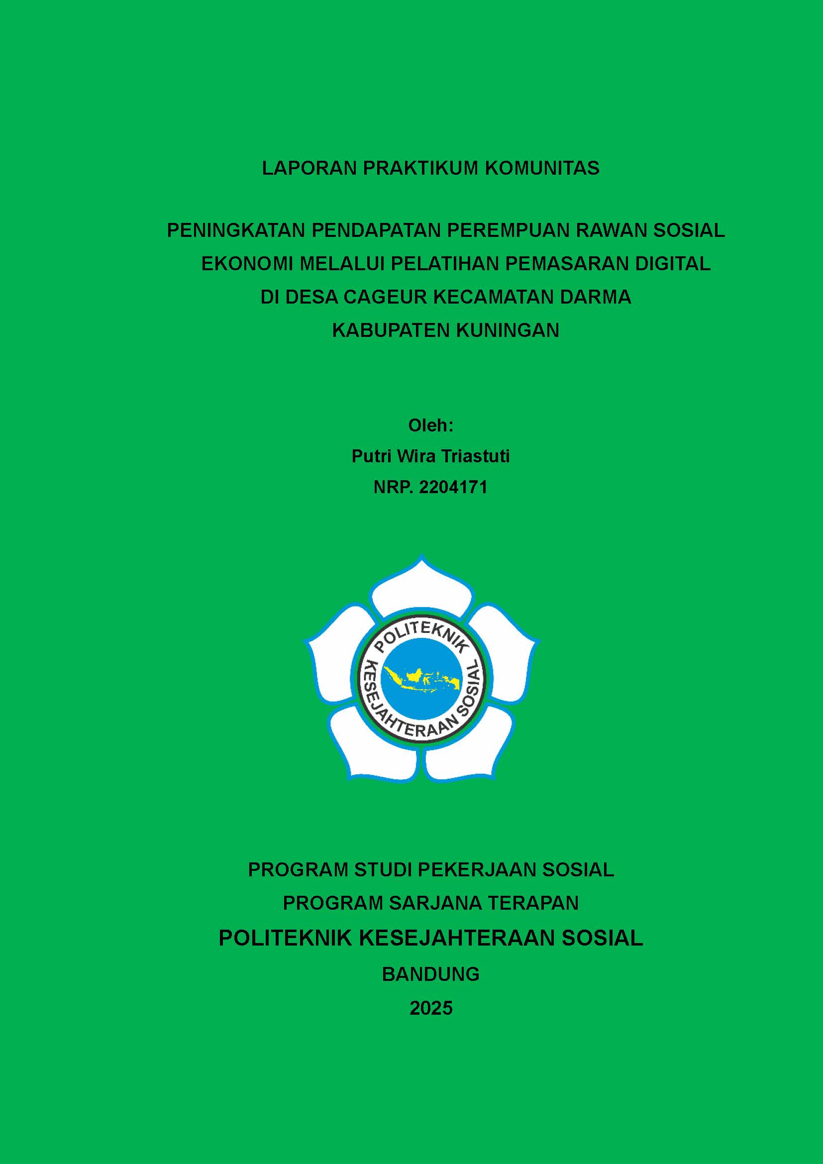 LAPORAN PRAKTIKUM KOMUNITAS PENINGKATAN PENDAPATAN PEREMPUAN RAWAN SOSIAL EKONOMI MELALUI PELATIHAN PEMASARAN DIGITAL DI DESA CAGEUR KECAMATAN DARMA KABUPATEN KUNINGAN