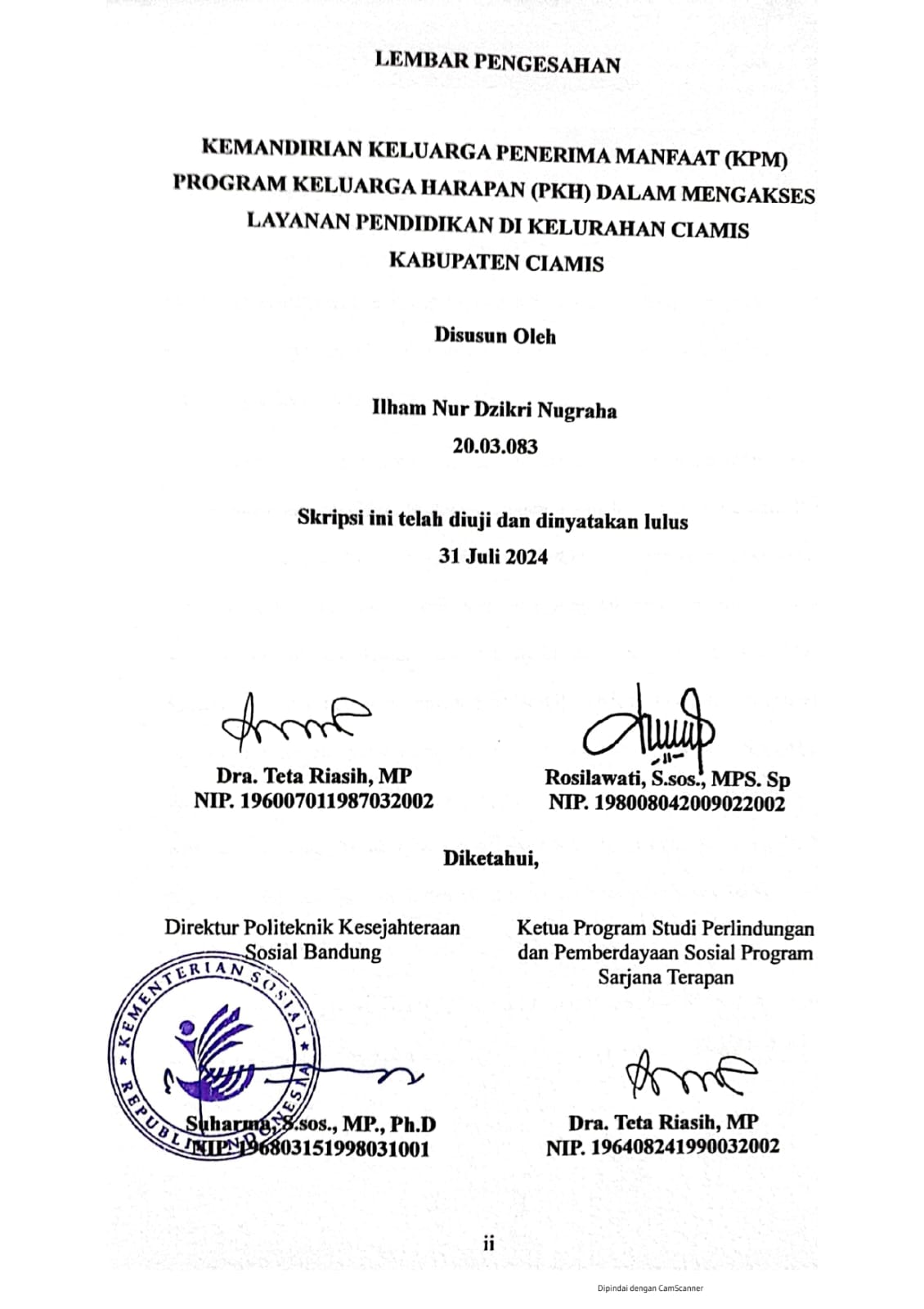 ILHAM NUR DZIKRI N, NRM. 20.03.083. Kemandirian Keluarga Penerima Manfaat (KPM) Program Keluarga Harapan (PKH) dalam mengakses layanan pendidikan di Kelurahan Ciamis Kabupaten Ciamis.