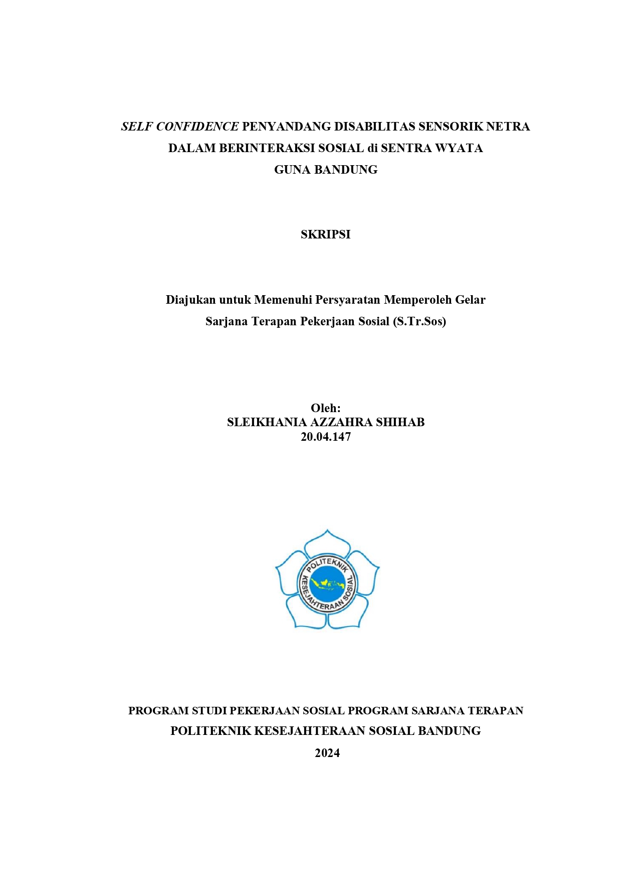 Kata Kunci: Self Confidence, Penyandang Disabilitas Sensorik Netra, Sentra