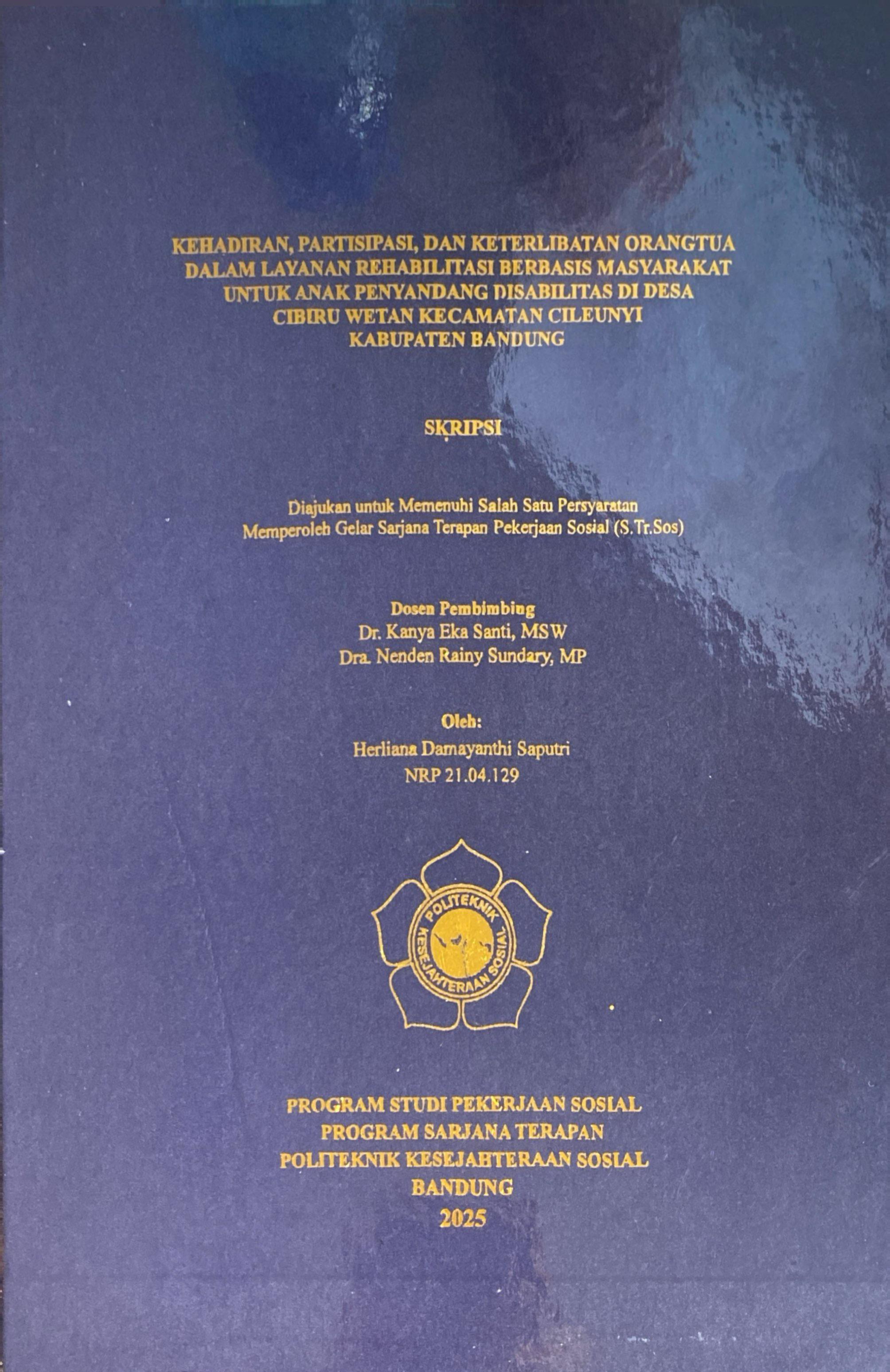 HERLIANA DAMAYANTHI SAPUTRI, NRP 21.04.129. Kehadiran, Partisipasi, dan Keterlibatan Orangtua dalam Layanan Rehabilitasi Berbasis Masyarakat untuk Anak Penyandang Disabilitas di Desa Cibiru Wetan Kecamatan Cileunyi Kabupaten Bandung. Dibimbing oleh KANYA EKA SANTI dan NENDEN RAINY SUNDARY.
