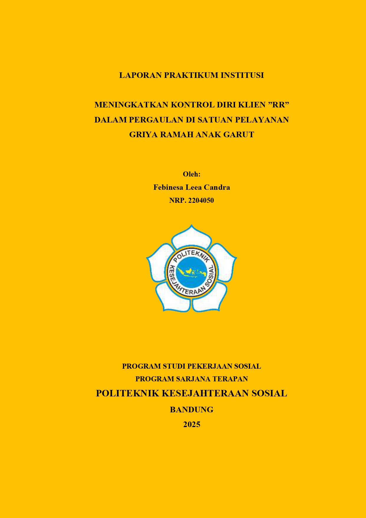 LAPORAN PRAKTIKUM INSTITUSI MENINGKATKAN KONTROL DIRI KLIEN ”RR” DALAM PERGAULAN DI SATUAN PELAYANAN GRIYA RAMAH ANAK GARUT