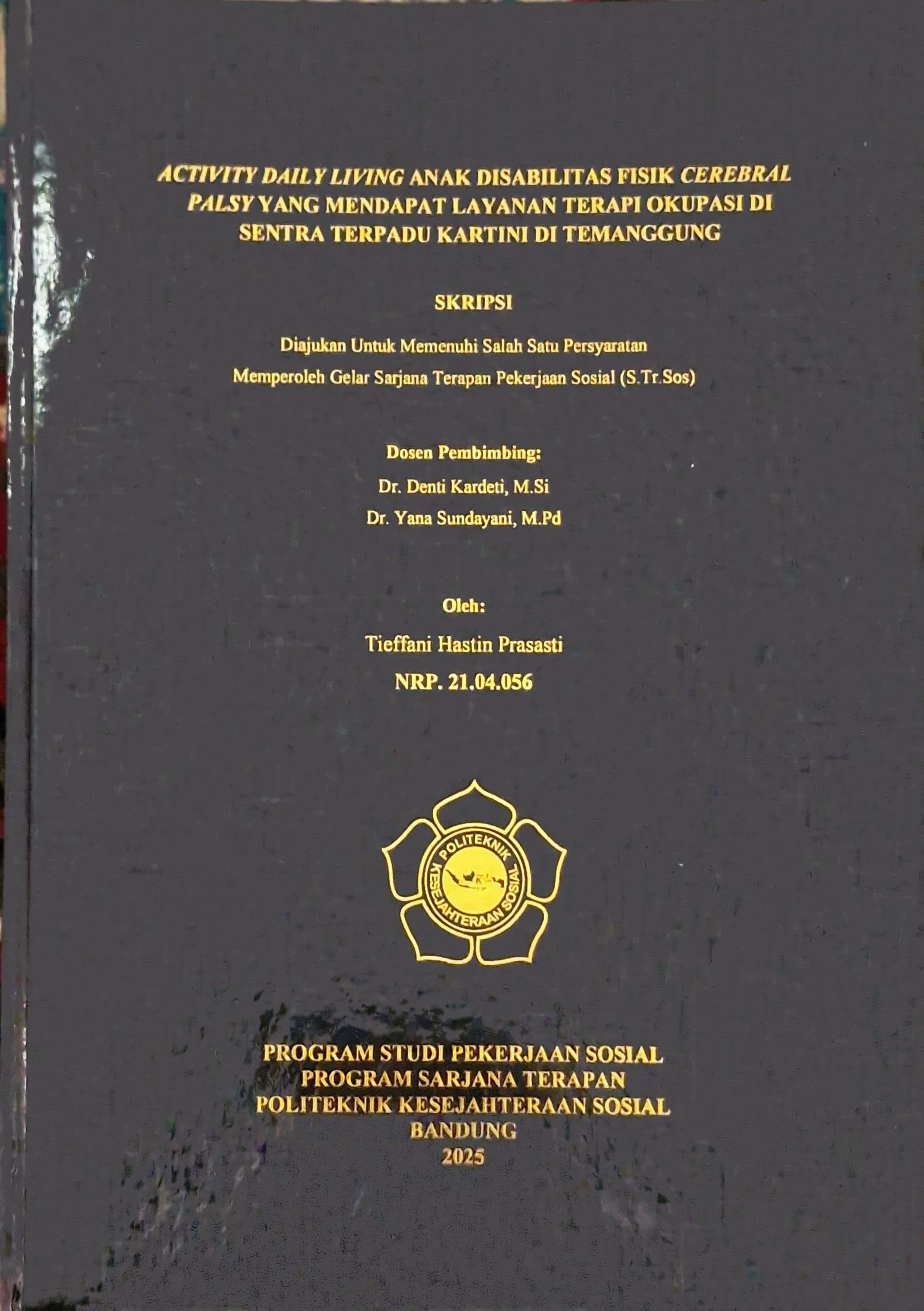 TIEFFANI HASTIN PRASASTI. NRP. 21.04.056. Activity Daily Living Anak Disabilitas Fisik Cerebral Palsy yang Mendapat Layanan Terapi Okupasi di Sentra Terpadu Kartini di Temanggung, Dibimbing oleh DENTI KARDETI dan YANA SUNDAYANI