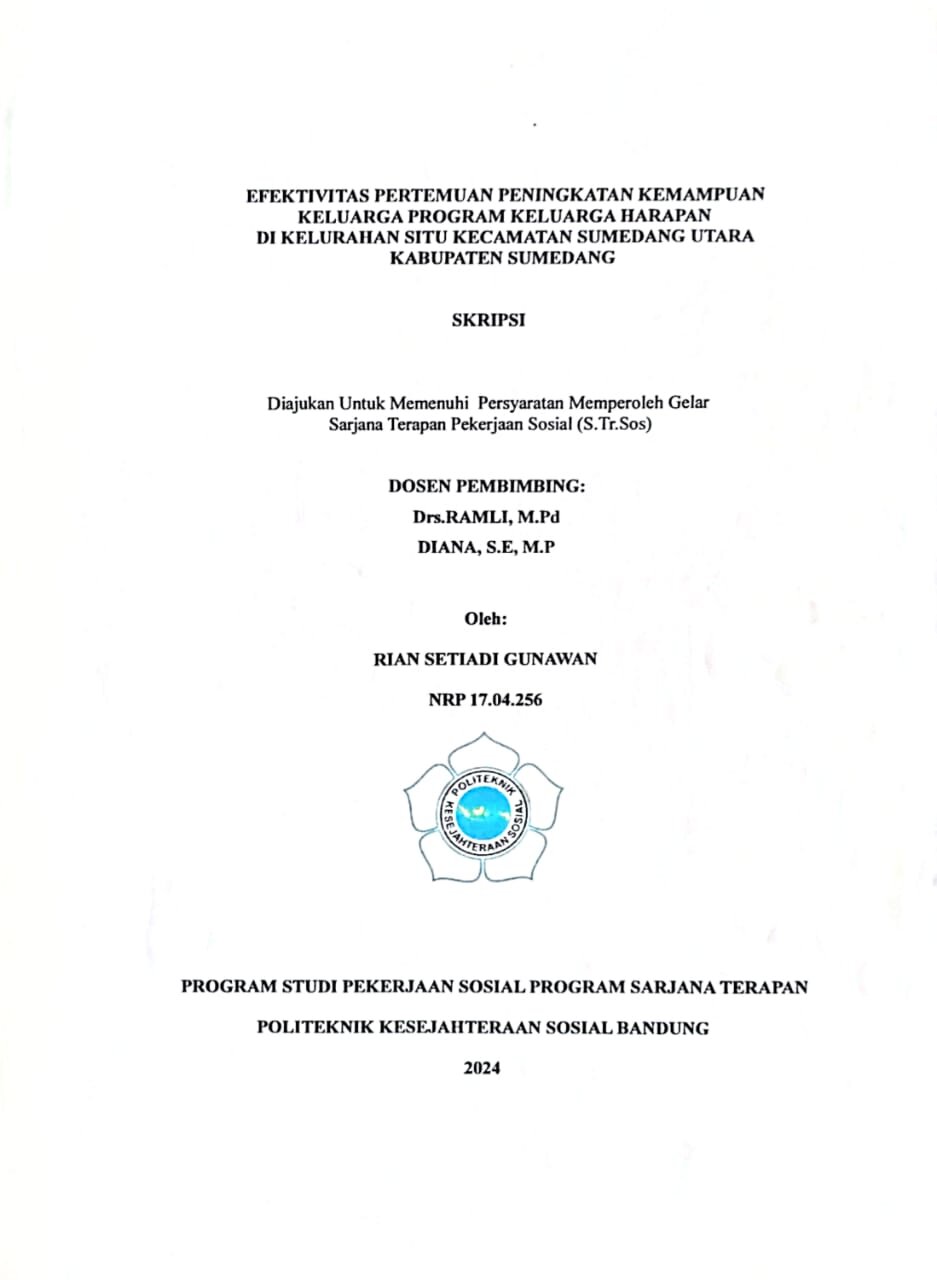 Rian Setiadi Gunawan, NRP.17.04.256. Efektivitas Pertemuan Peningkatan Kemampuan Keluarga Program Keluarga Harapan Di Kelurahan Situ Kecamatan Sumedang Utara Kabupaten Sumedang,