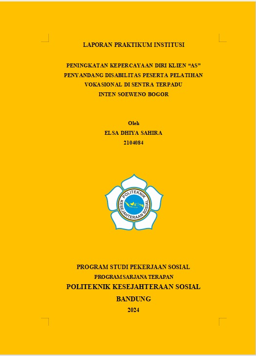 LAPORAN PRAKTIKUM INSTITUSI - PENINGKATAN KEPERCAYAAN DIRI KLIEN “AS” PENYANDANG DISABILITAS PESERTA PELATIHAN VOKASIONAL DI SENTRA TERPADU INTEN SOEWENO BOGOR