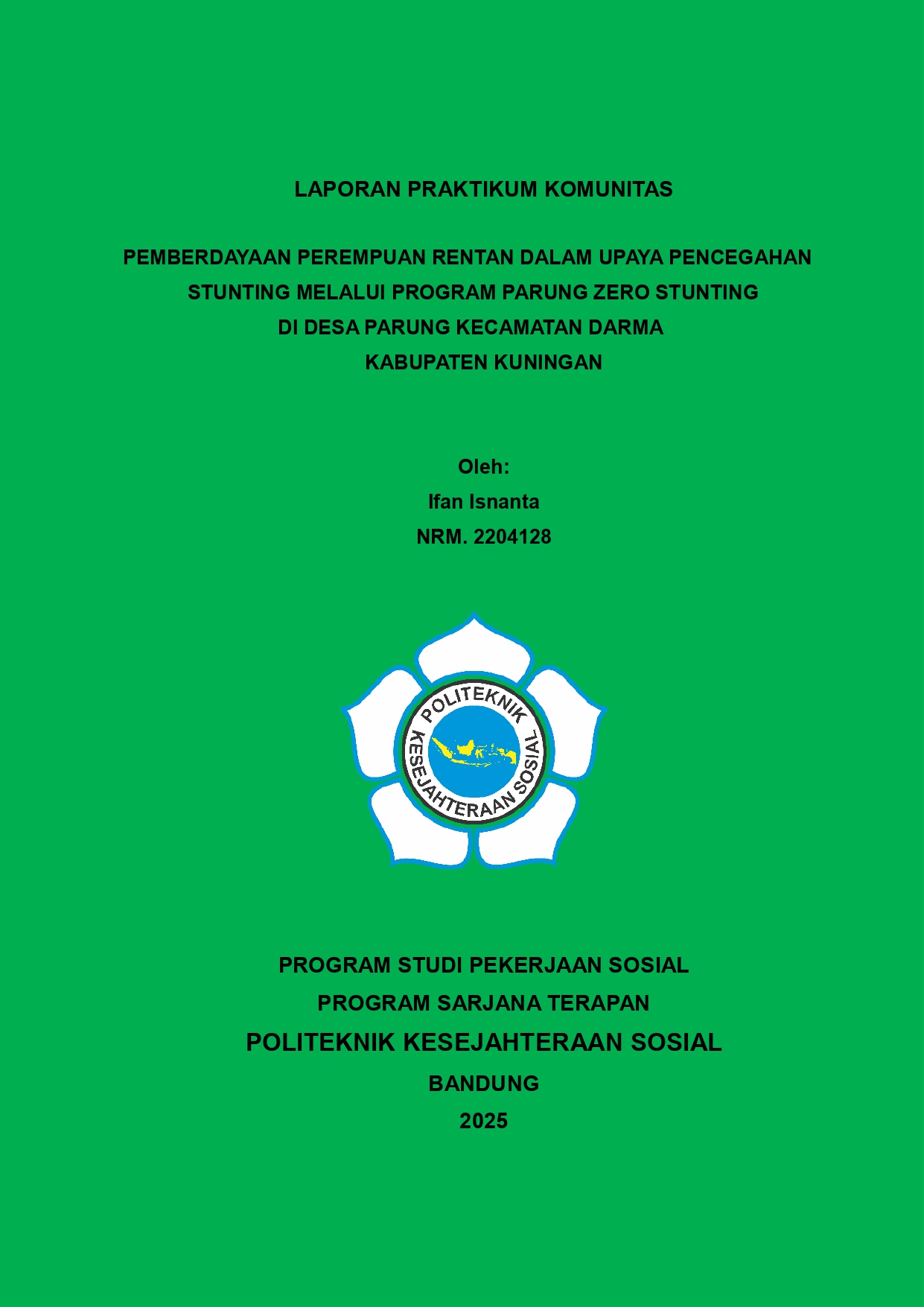 LAPORAN PRAKTIKUM KOMUNITAS PEMBERDAYAAN PEREMPUAN RENTAN DALAM UPAYA PENCEGAHAN STUNTING MELALUI PROGRAM PARUNG ZERO STUNTING DI DESA PARUNG KECAMATAN DARMA KABUPATEN KUNINGAN