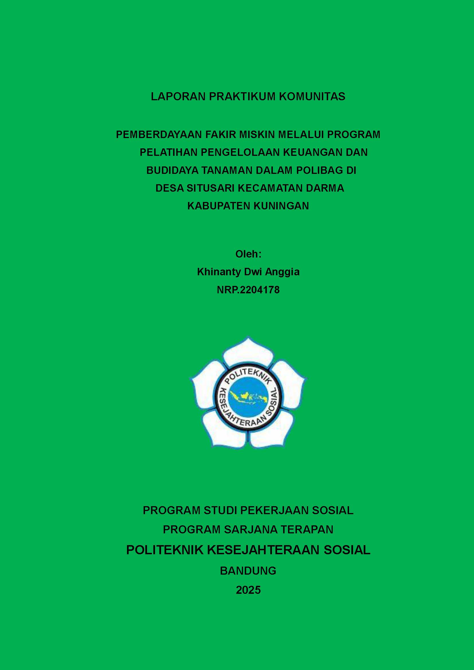 LAPORAN PRAKTIKUM KOMUNITAS - PEMBERDAYAAN FAKIR MISKIN MELALUI PROGRAM PELATIHAN PENGELOLAAN KEUANGAN DAN BUDIDAYA TANAMAN DALAM POLIBAG DI DESA SITUSARI KECAMATAN DARMA KABUPATEN KUNINGAN