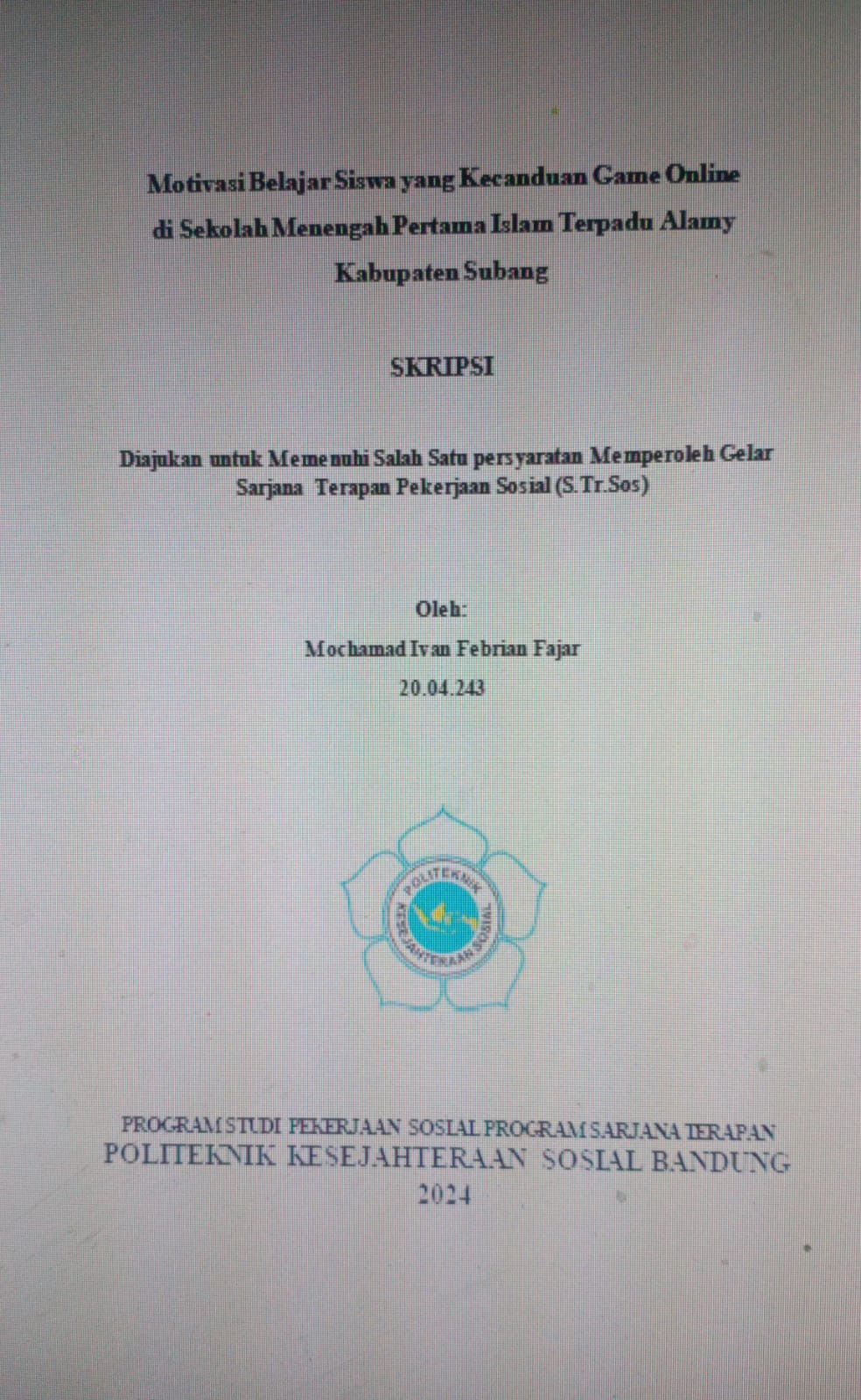 Motivasi Belajar Siswa yang Kecanduan Game Online di Sekolah Menengah Pertama Islam Terpadu Alamy Kabupaten Subang. Dosen Pembimbing: Krisna Dewi Setianingsih dan Popon Sutarsih.