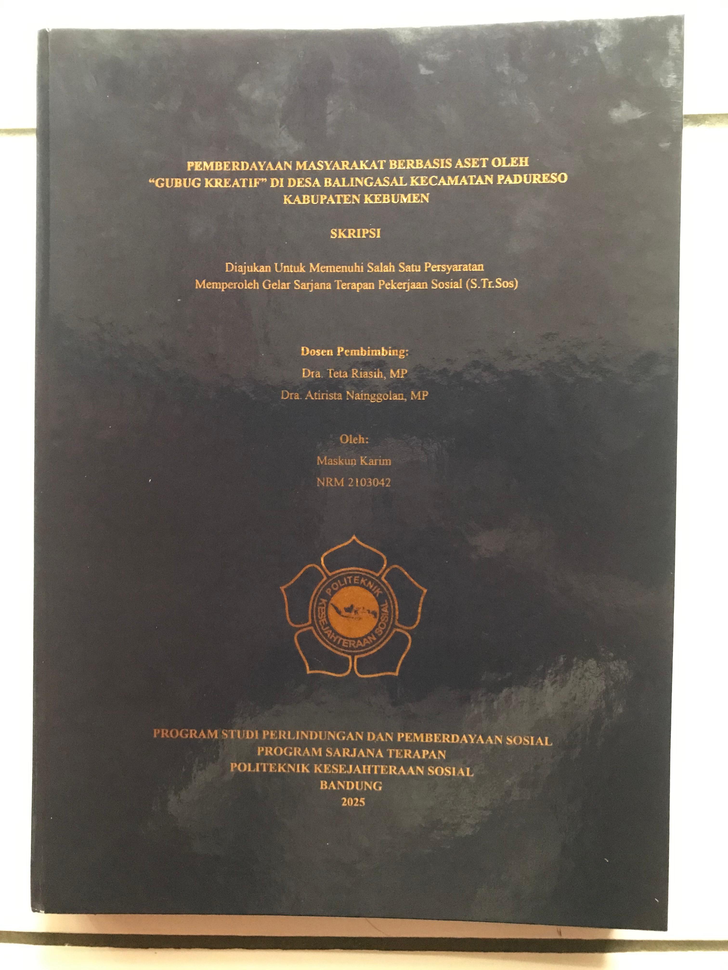 MASKUN KARIM, NRM. 21.03.042. Pemberdayaan Masyarakat Berbasis Aset Oleh Gubug Kreatif di Desa Balingasal Dibimbing oleh TETA RIASIH dan ATIRISTA NAINGGOLAN