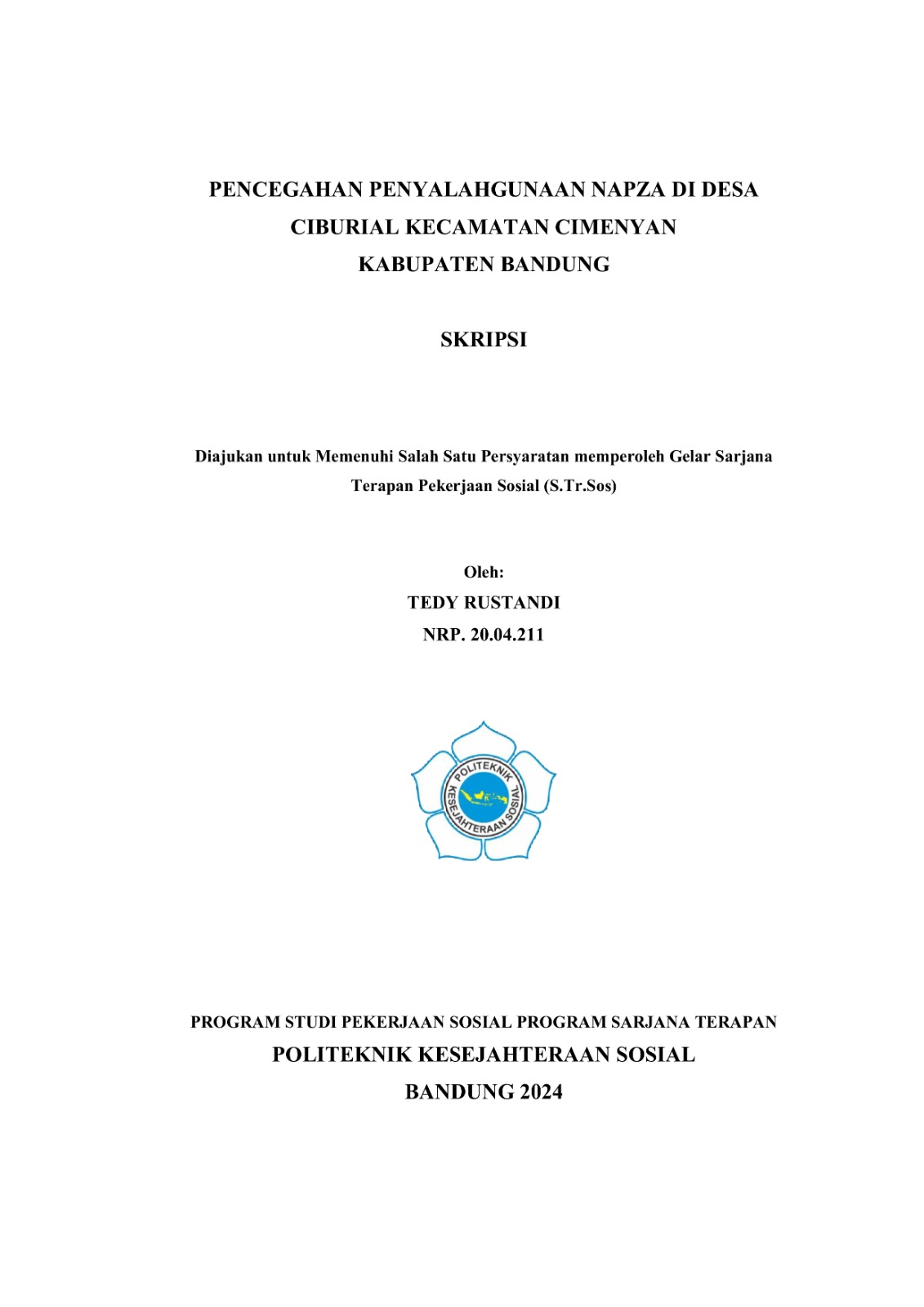 Tedy Rustandi, NRP. 20.04.211, Pencegahan Penyalahgunaan NAPZA Di Desa Ciburial Kecamatan Cimenyan Kabupaten Bandung.