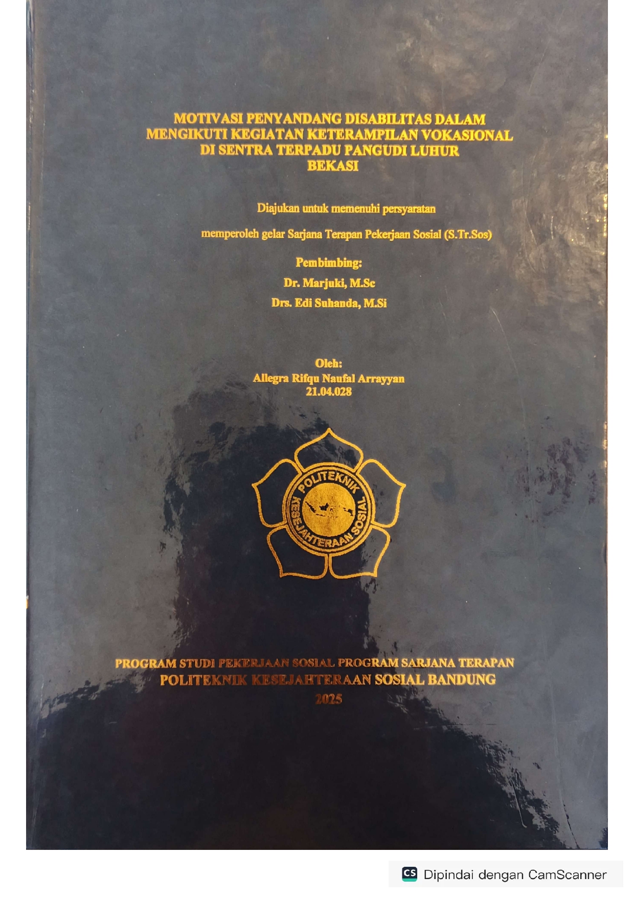 ALLEGRA RIFQU NAUFAL ARRAYYAN, NRP. 21.04.028. Motivasi Penyandang Disabilitas Dalam Mengikuti Kegiatan Keterampilan Vokasional (Pijat) Di Sentra Terpadu Pangdi Luhur Bekasi, Dosen Pembimbing: MARJUKI dan EDI SUHANDA.