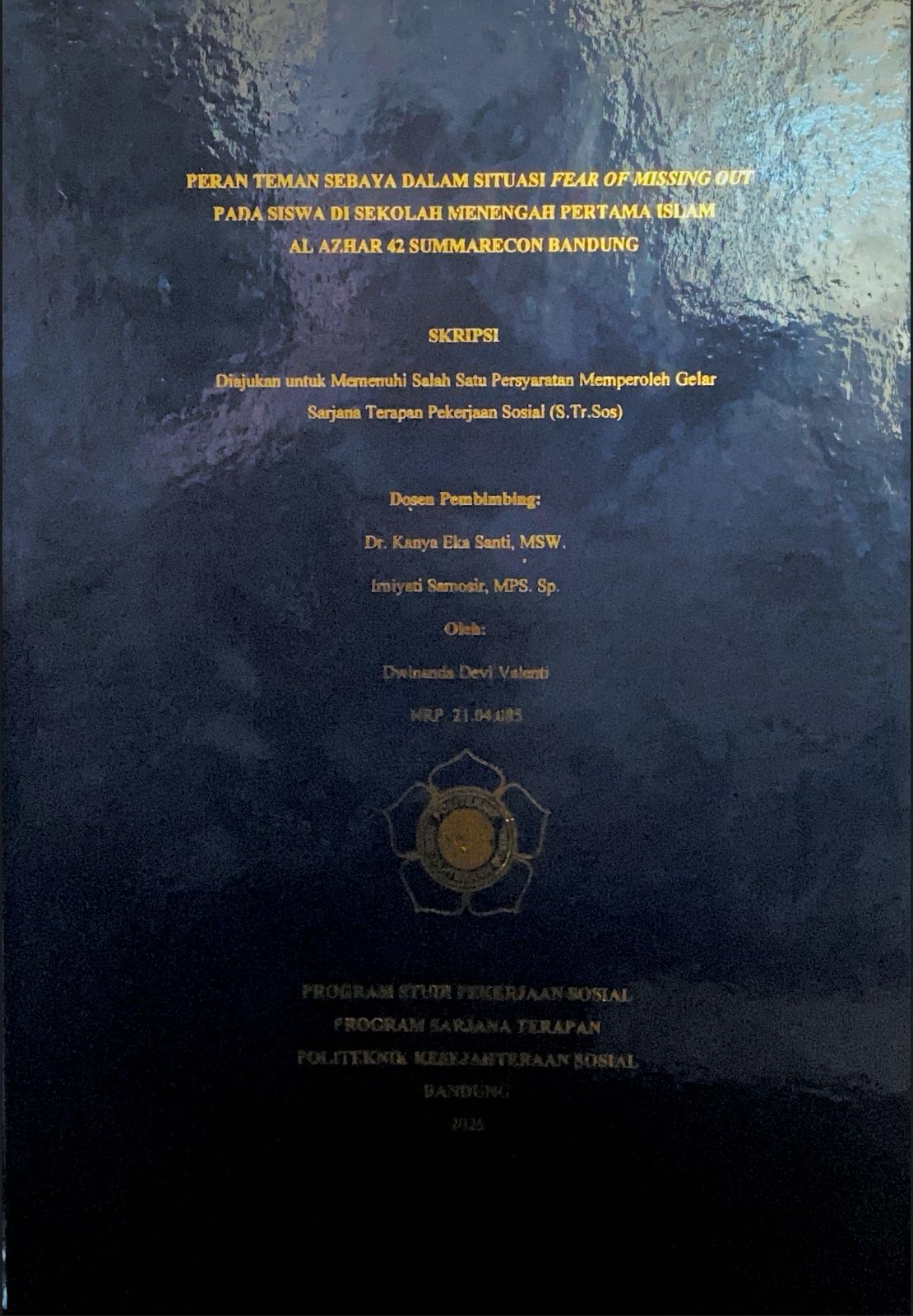 DWINANDA DEVI VALENTI, NRP. 21.04.085. Peran Teman Sebaya dalam Situasi Fear of Missing Out (FoMO) pada Siswa di Sekolah Menengah Pertama Islam Al Azhar 42 Summarecon Bandung, Dibimbing oleh Kanya Eka Santi dan Irniyati Samosir.