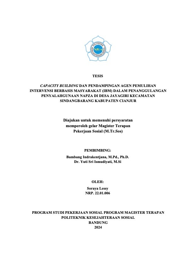 SORAYA LESSY. 22.01.006. Capacity Building dan Pendampingan Agen Pemulihan Intervensi Berbasis Masyarakat (IBM) dalam Penanggulangan Penyalahgunaan NAPZA di Desa Jayagiri Kecamatan Sindangbarang Kabupaten Cianjur.