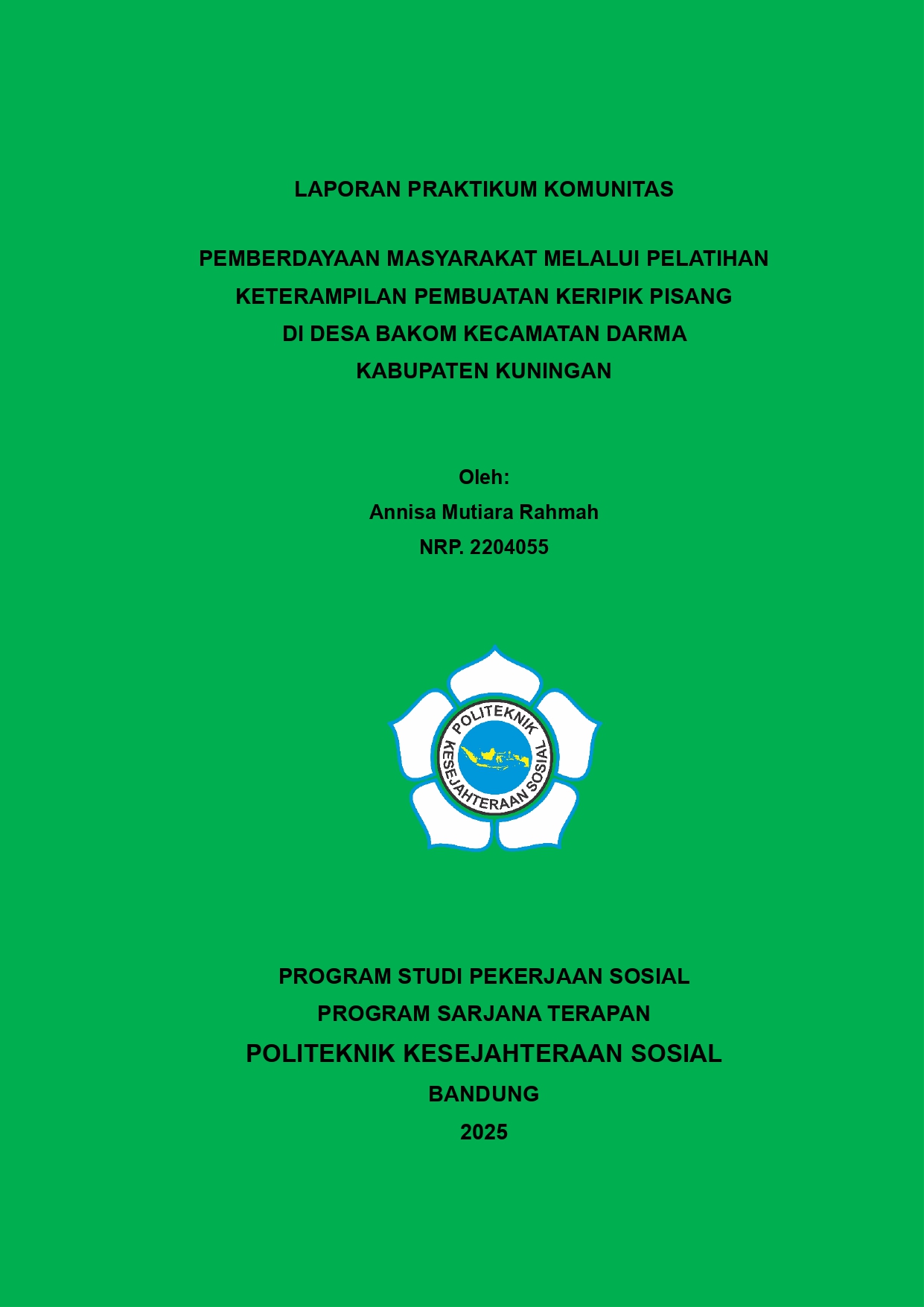 LAPORAN PRAKTIKUM KOMUNITAS PEMBERDAYAAN MASYARAKAT MELALUI PELATIHAN KETERAMPILAN PEMBUATAN KERIPIK PISANG DI DESA BAKOM KECAMATAN DARMA KABUPATEN KUNINGAN