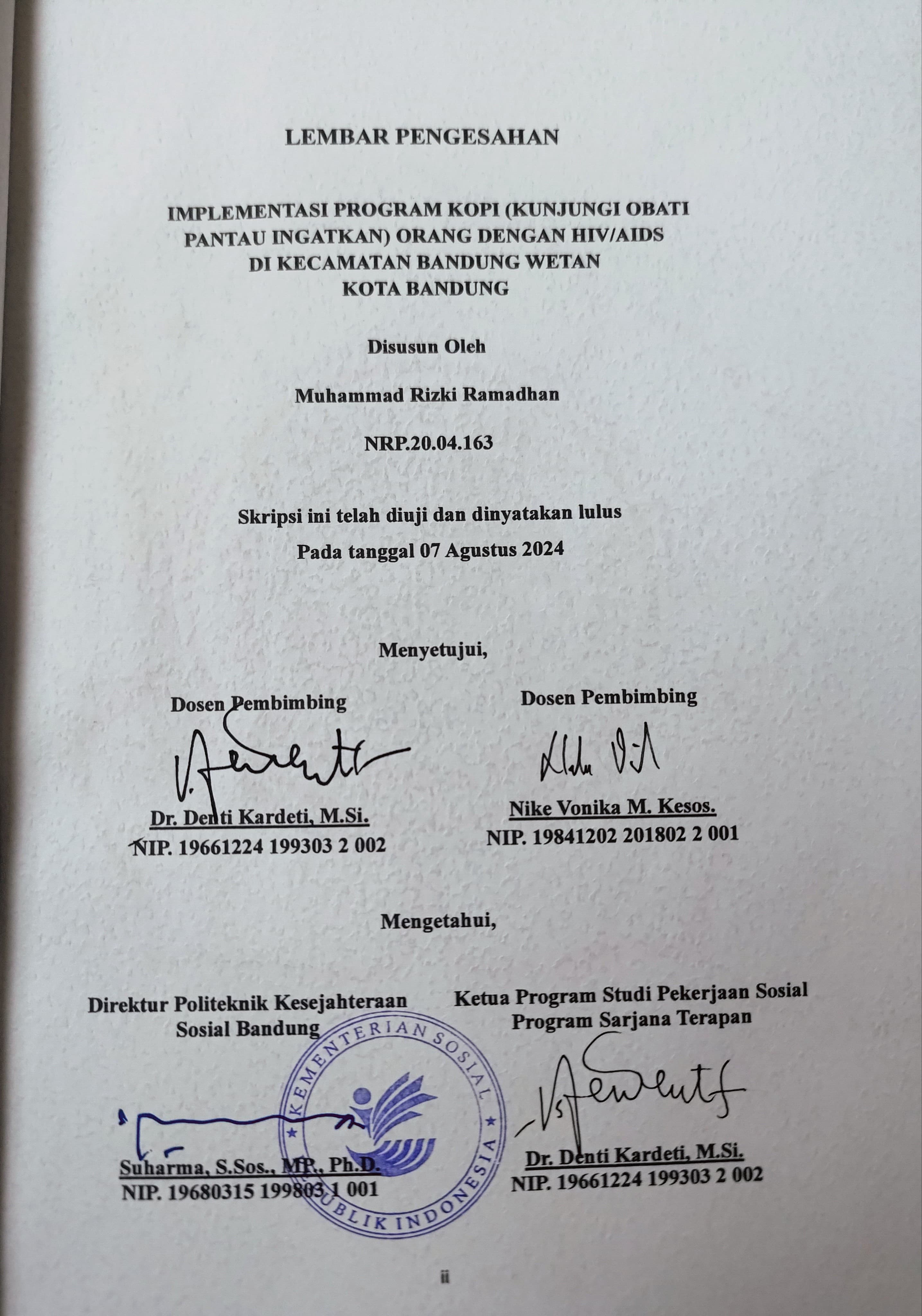 MUHAMMAD RIZKI RAMADHAN, 20.04.163. Implementation of KOPI (Kunjungi, Obati, Pantau, Ingatkan) Program for People with HIV/AIDS in Bandung Wetan Sub-district, Bandung City. DENTI KARDETI and NIKE VONIKA.