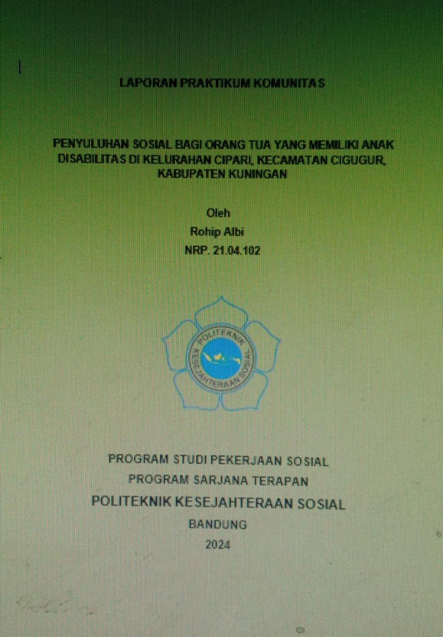 LAPORAN PRAKTIKUM KOMUNITAS TAHUN 2024 - PENYULUHAN SOSIAL BAGI ORANG TUA YANG MEMILIKI ANAK DISABILITAS DI KELURAHAN CIPARI, KECAMATAN CIGUGUR, KABUPATEN KUNINGAN