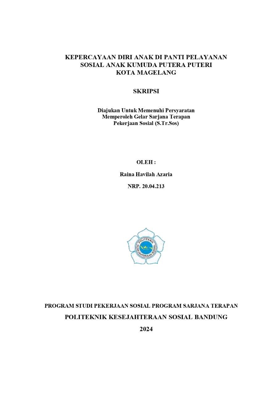 RAINA HAVILAH AZARIA, NRP 20.04.213. Kepercayaan Diri Anak Di Panti Pelayanan Sosial Anak Kumuda Putera Puteri Kota Magelang. Skripsi. 2024. Politeknik Kesejahteraan Sosial Bandung.