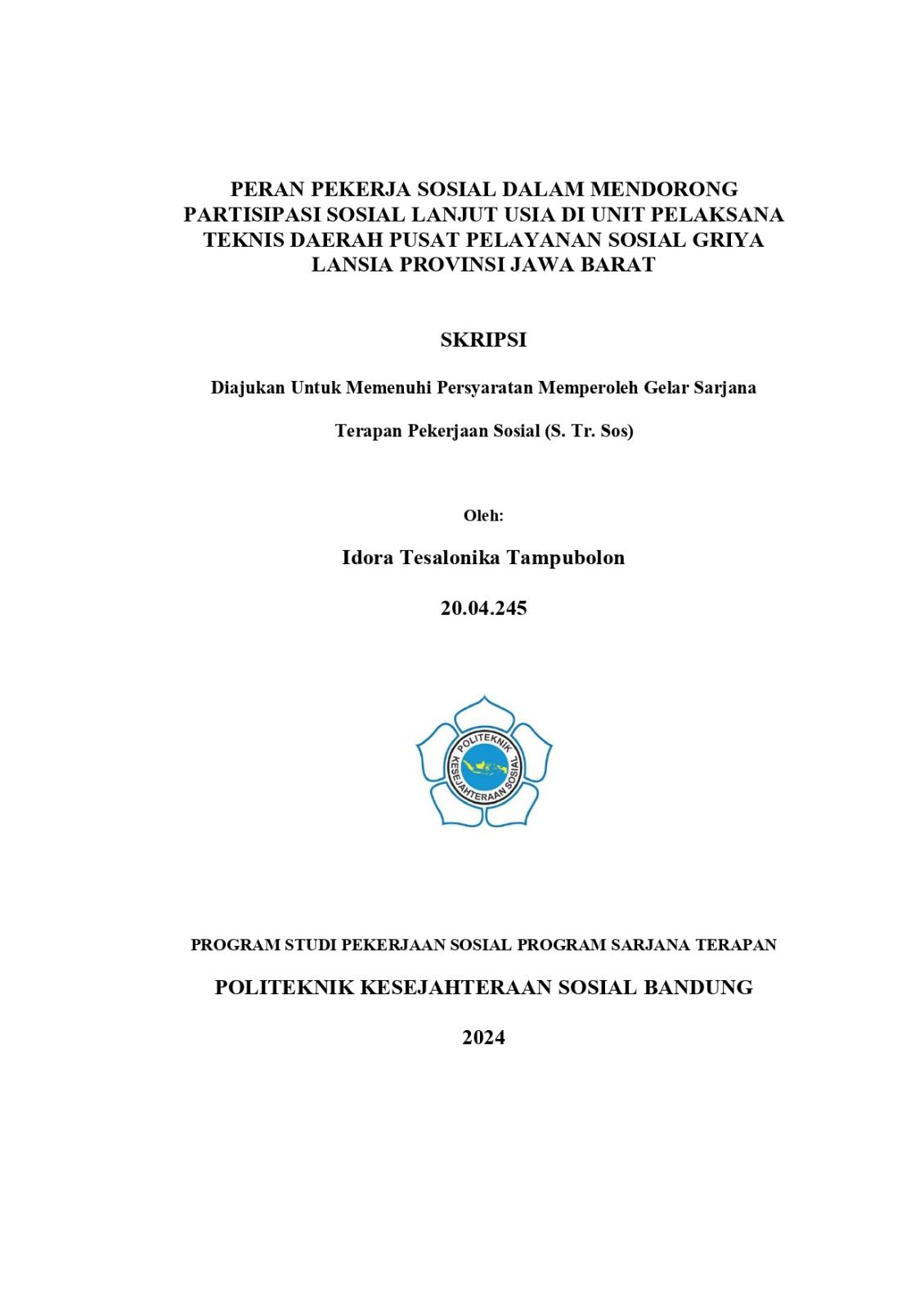 IDORA TESALONIKA TAMPUBOLON, 20.04.245. Peran Pekerja Sosial