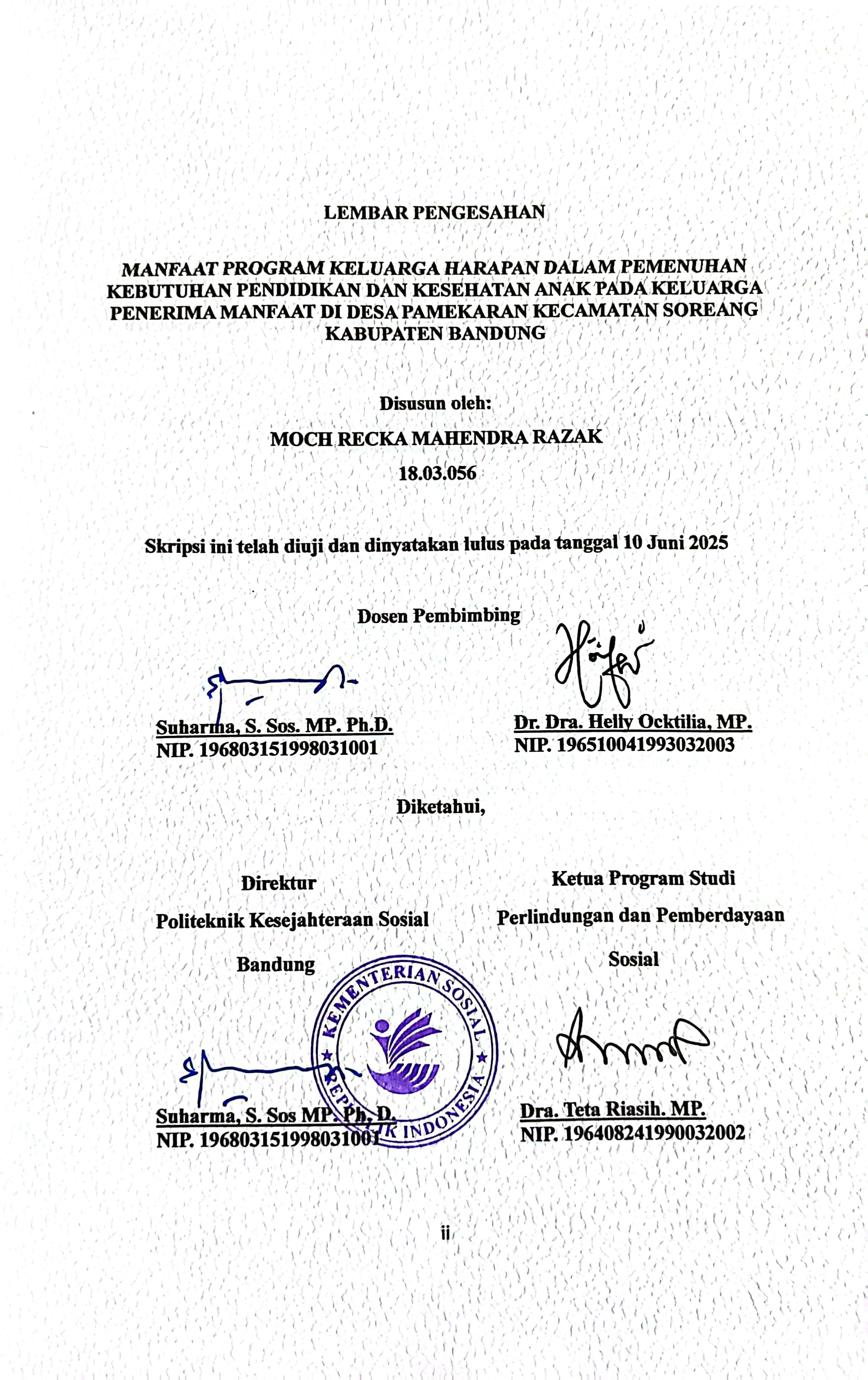 Kata Kunci: Manfaat, Program Keluarga Harapan, Pemenuhan Kebutuhan Pendidikan dan Kesehatan