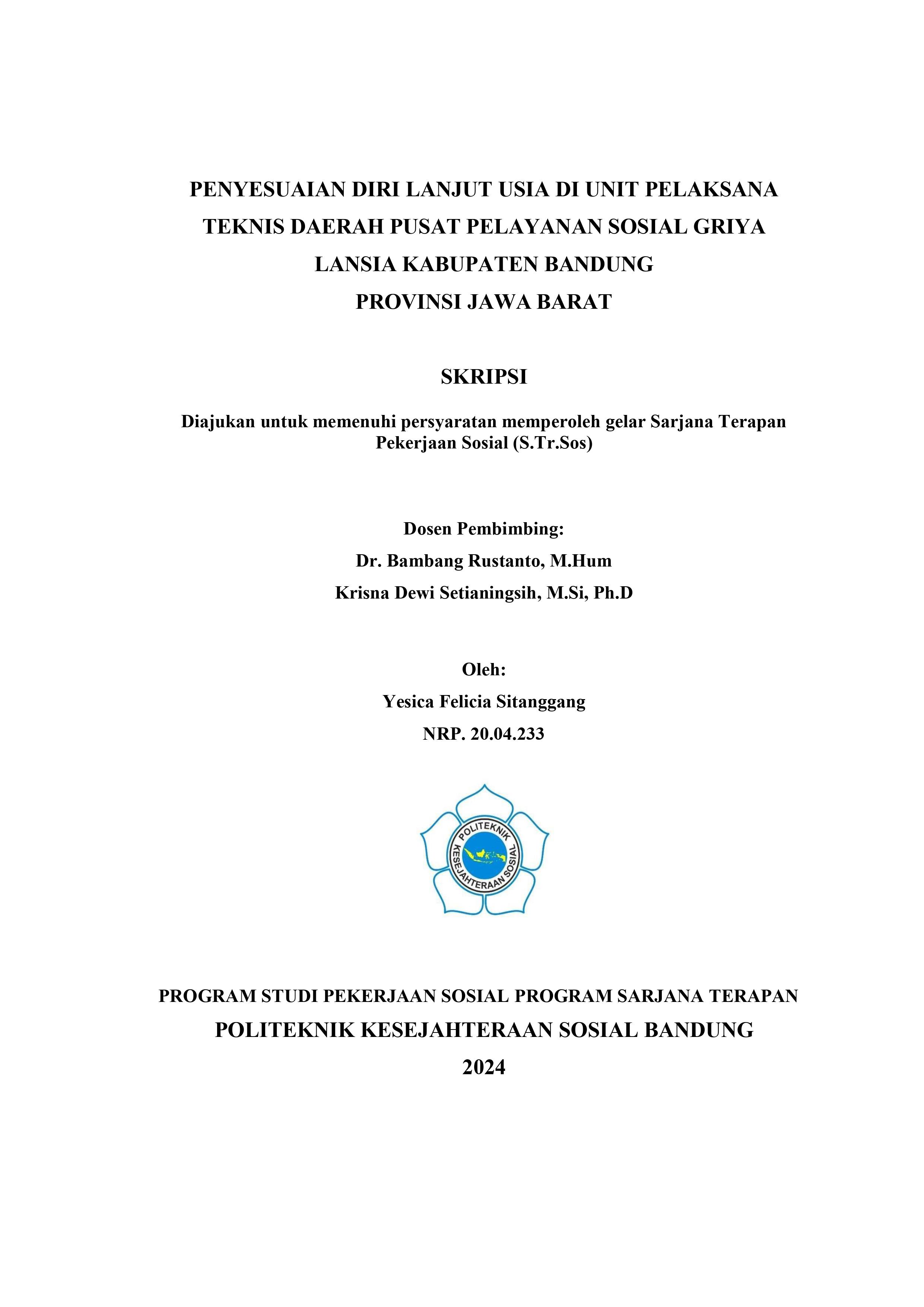 Penyesuaian Diri Lanjut Usia di Unit Pelaksana Teknis Daerah Pusat Pelayanan Sosial Griya Lansia Kabupaten Bandung Provinsi Jawa Barat.