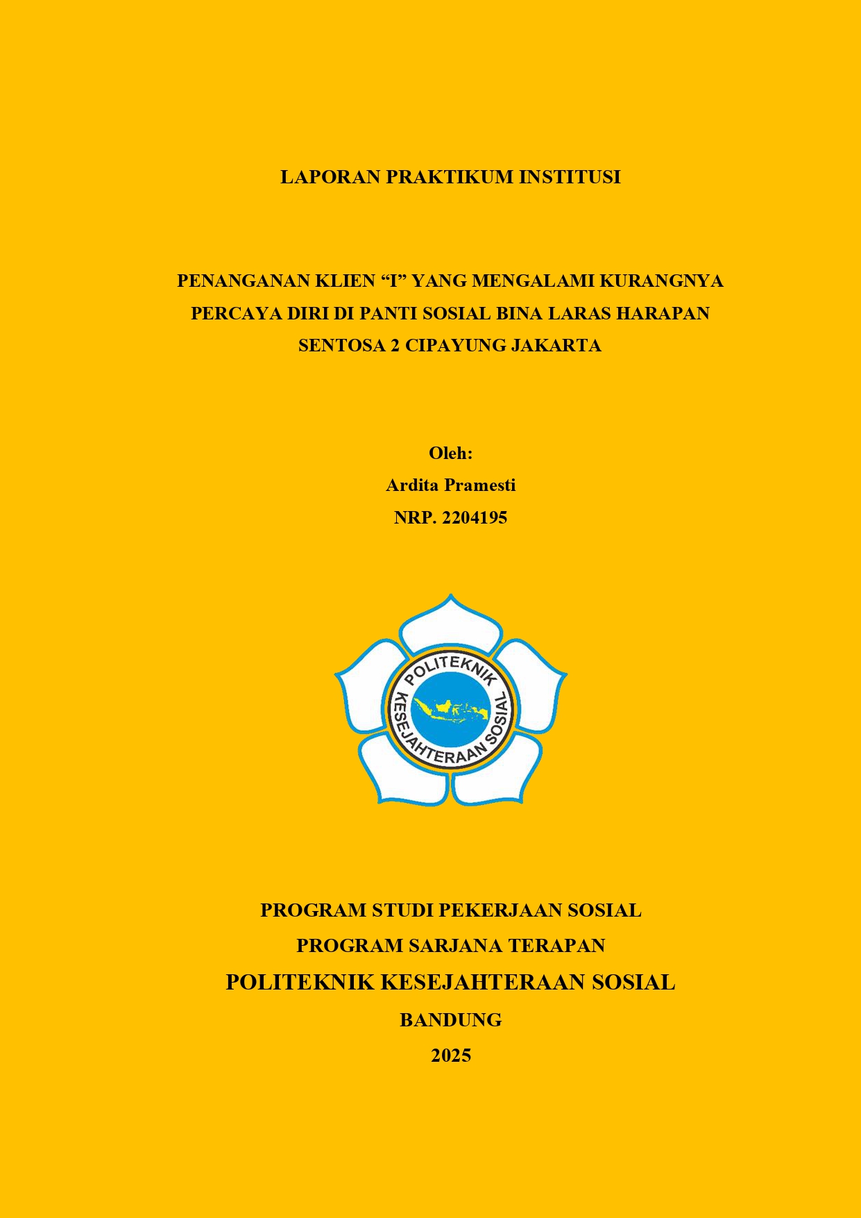 LAPORAN PRAKTIKUM INSTITUSI PENANGANAN KLIEN “I” YANG MENGALAMI KURANGNYA PERCAYA DIRI DI PANTI SOSIAL BINA LARAS HARAPAN SENTOSA 2 CIPAYUNG JAKARTA