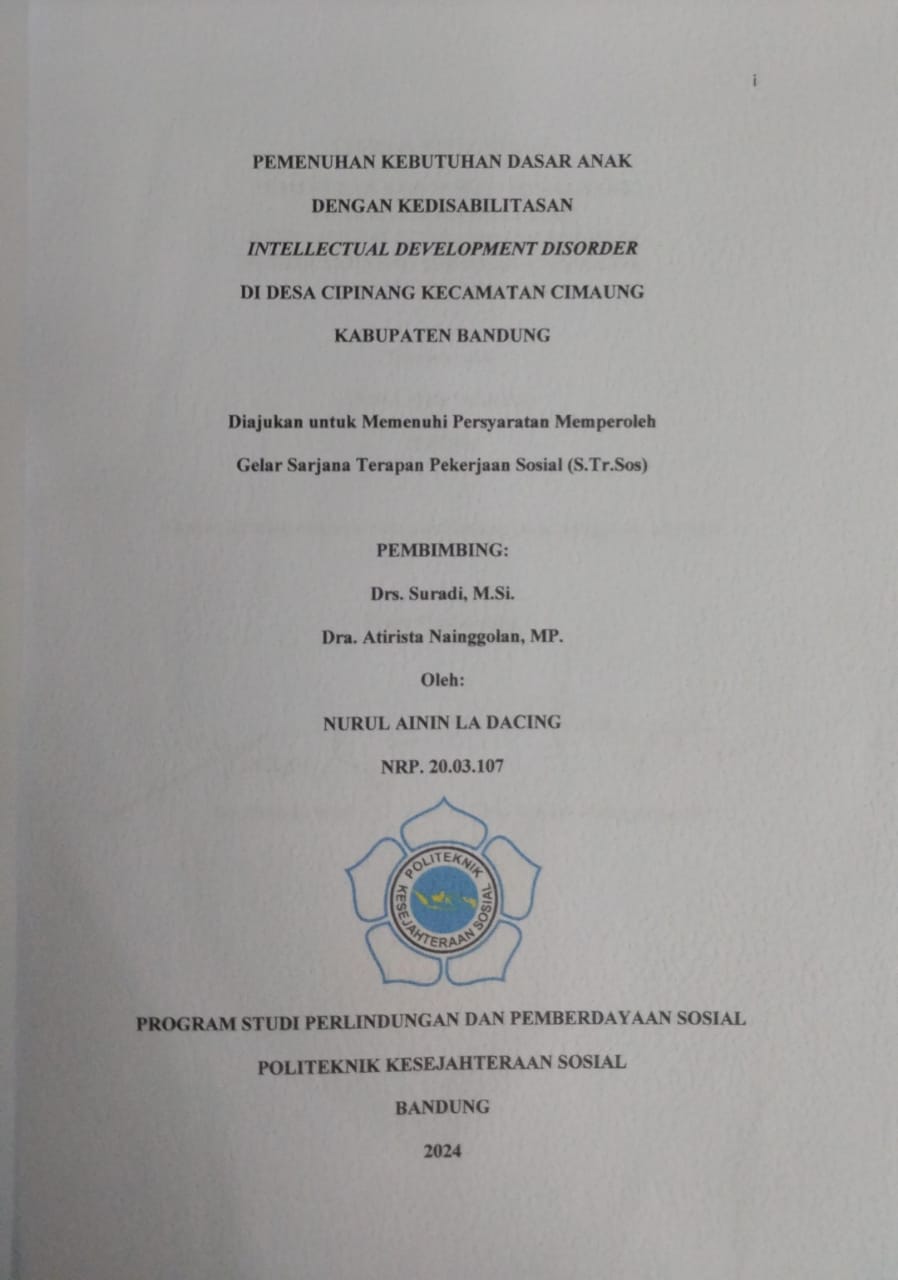 NURUL AININ LA DACING, NRP. 20.03.107. Pemenuhan Kebutuhan Dasar Anak dengan Kedisabilitasan Intellectual Development Disorder di Desa Cipinang Kecamatan Cimaung Kabupaten Bandung, Agustus 2024,