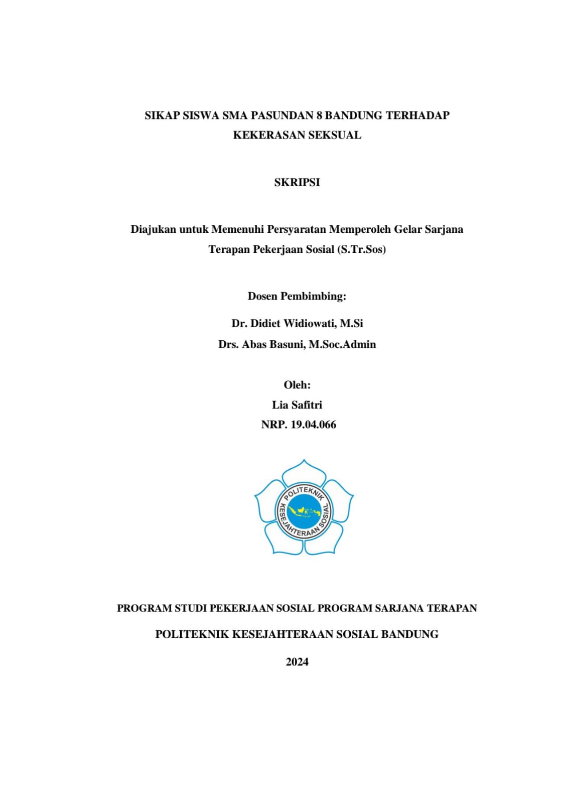 Sikap Siswa SMA Pasundan 8 Bandung terhadap Kekerasan Seksual. Program Studi Pekerjaan Sosial Program Sarjana Terapan, 2024,