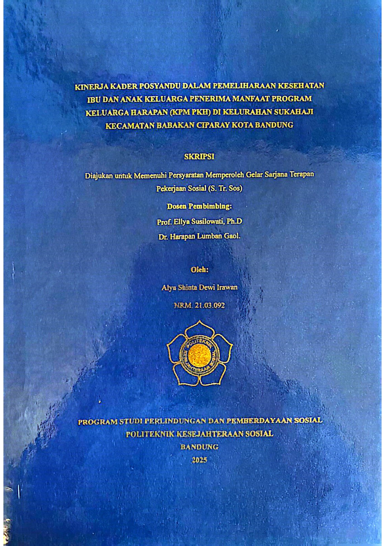 ALYA SHINTA DEWI IRAWAN, NRM.21.03.092. Kinerja Kader Posyandu Dalam Pemeliharaan Kesehatan Ibu dan Anak Keluarga Penerima Manfaat Program Keluarga Harapan (KPM PKH) Di Kelurahan Sukahaji Kecamatan Babakan Ciparay Kota Bandung. Dosen Pembimbing: ELLYA SUSILOWATI dan HARAPAN LUMBAN GAOL Kader Posyandu memiliki peran strategis dalam pelayanan kesehatan masyarakat, khususnya bagi kelompok ibu dan anak dari keluarga miskin yang memiliki keterbatasan akses terhadap layanan kesehatan formal. Penelitian ini bertujuan untuk menganalisis kinerja kader Posyandu dalam pemeliharaan kesehatan ibu dan anak miskin khususnya keluarga penerima manfaat program keluarga harapan di Kelurahan Sukahaji, Kecamatan Babakan Ciparay, Kota Bandung. Penelitian ini menggunakan pendekatan kualitatif dengan teknik pengumpulan data berupa wawancara mendalam, observasi partisipatif, dan studi dokumentasi. Informan penelitian terdiri dari ibu-ibu penerima layanan Posyandu dan para kader yang aktif. Analisis data dilakukan dengan menggunakan teori kinerja T.R. Mitchell yang meliputi lima aspek: kualitas kerja, ketepatan bekerja, kemampuan kerja, hubungan komunikasi, dan inisiatif. Hasil penelitian menunjukkan bahwa kinerja kader Posyandu sudah cukup baik dalam aspek ketepatan dan kemampuan kerja, namun masih terdapat kendala dalam aspek komunikasi dan inisiatif, terutama dalam menjangkau ibu dan anak miskin secara aktif serta memberikan edukasi kesehatan yang efektif. Temuan ini menegaskan pentingnya dukungan pelatihan dan fasilitasi dari pihak terkait untuk meningkatkan kualitas layanan. Sebagai tindak lanjut, peneliti mengusulkan program penguatan kapasitas kader Posyandu agar pelayanan kesehatan bagi keluarga miskin dapat lebih optimal dan merata. Kata kunci: Kinerja Kader Posyandu, Kesehatan Ibu dan Anak, Kemiskinan